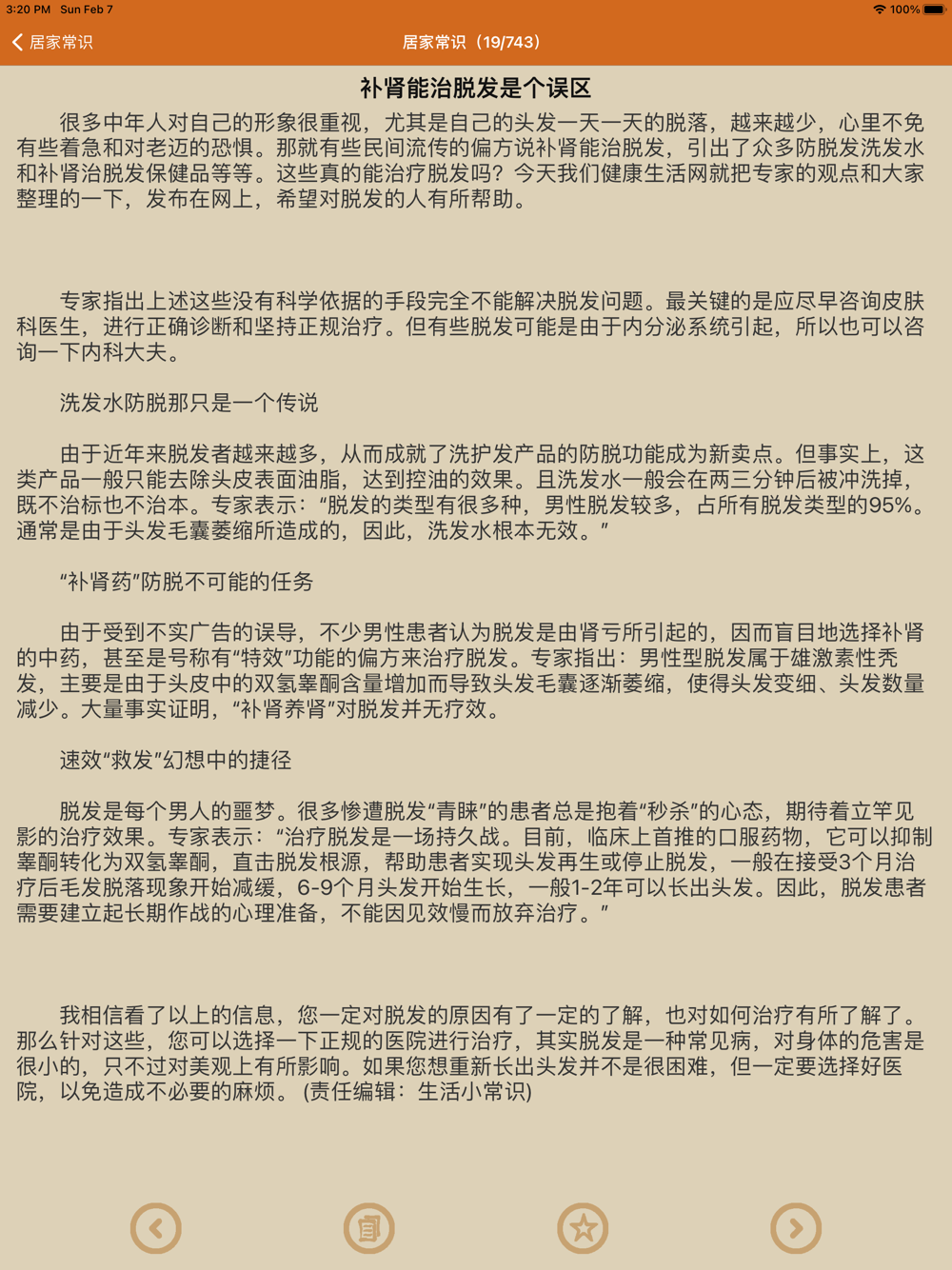 本应用收集了各种生活小常识,共分为12大类,包括生活常识,家电电脑,健康养生 ,安全急救,美食天下等大分类,且并每个大分类下面又分为几个详细小类,并有复制及收藏功能,非常方便用户使用。