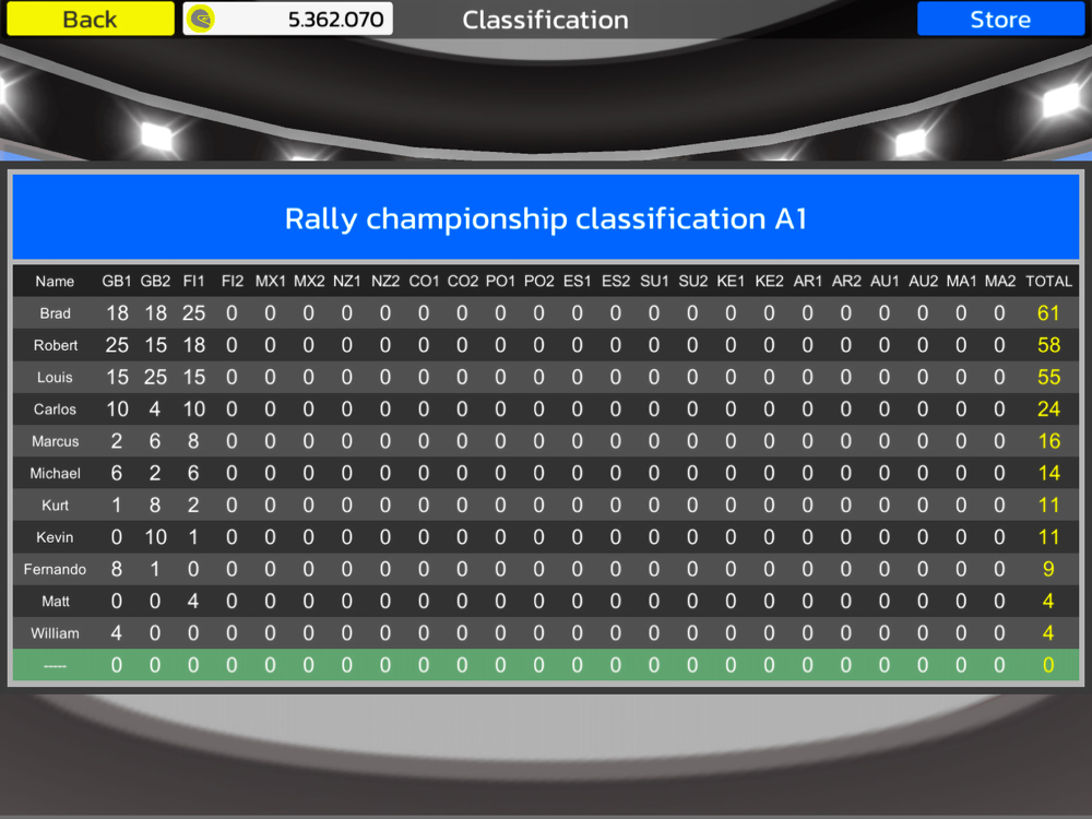 18 races on dirt, snow and asphalt circuits where you compete against another 5 participants in very hard fights for the first place.