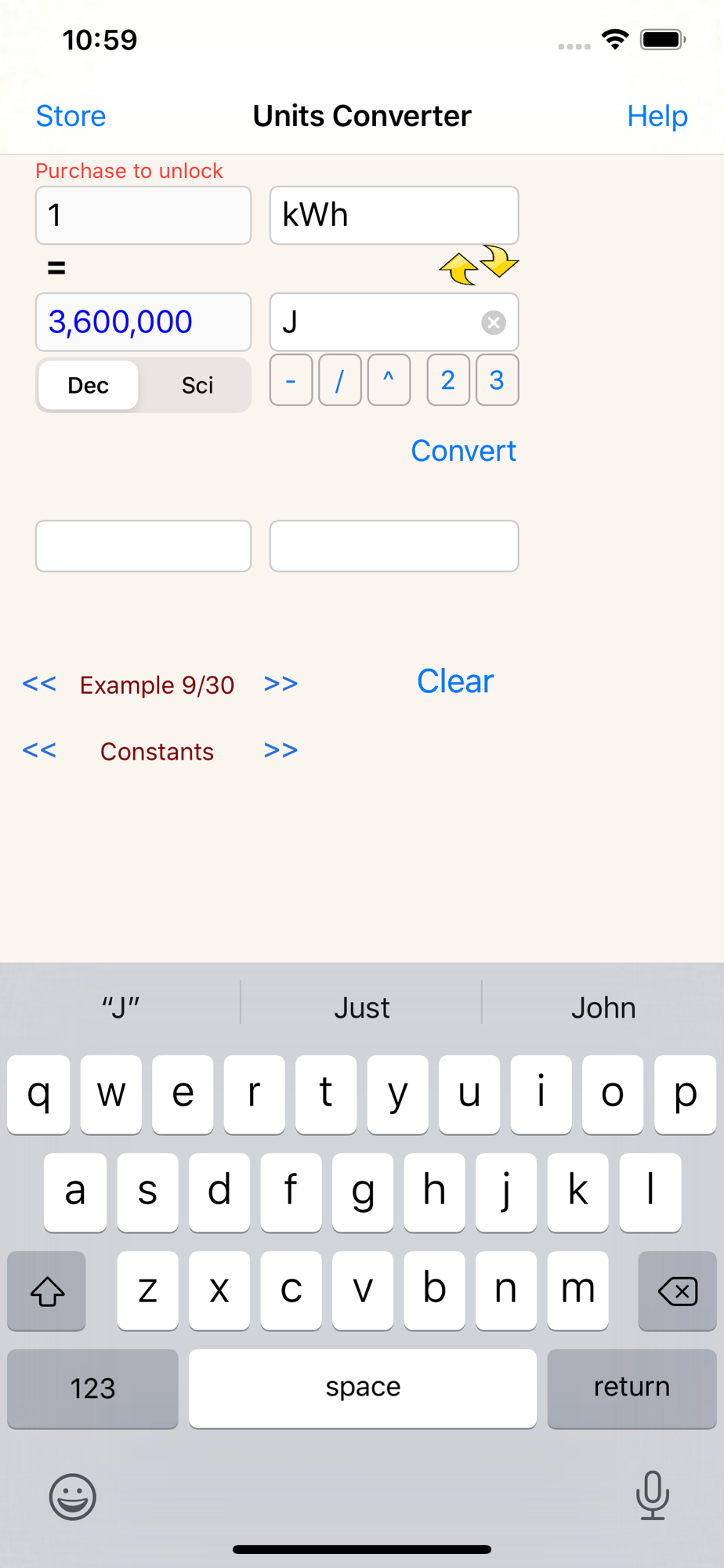For example: It can effortlessly convert Energy in ton-TNT (tTNT) to kg-km^2/hr^2. If there is a units mismatch, it will identify missing units. Plus dozens of physical constants such as speed of sound, speed of light, gravitation constant, etc. are built-in and can be retrieved by entering their symbol.