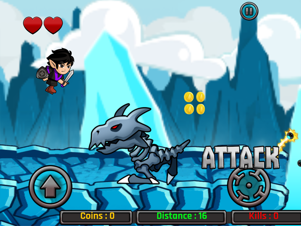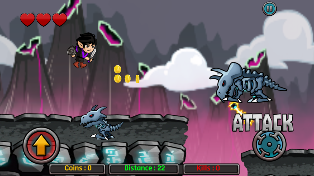Knights of the kingdom is an side scrolling endless runner game. Kill as many dinosaurs as possible, collect coins, buy shields, magnets and weapons. Then kill some more dinosaurs.