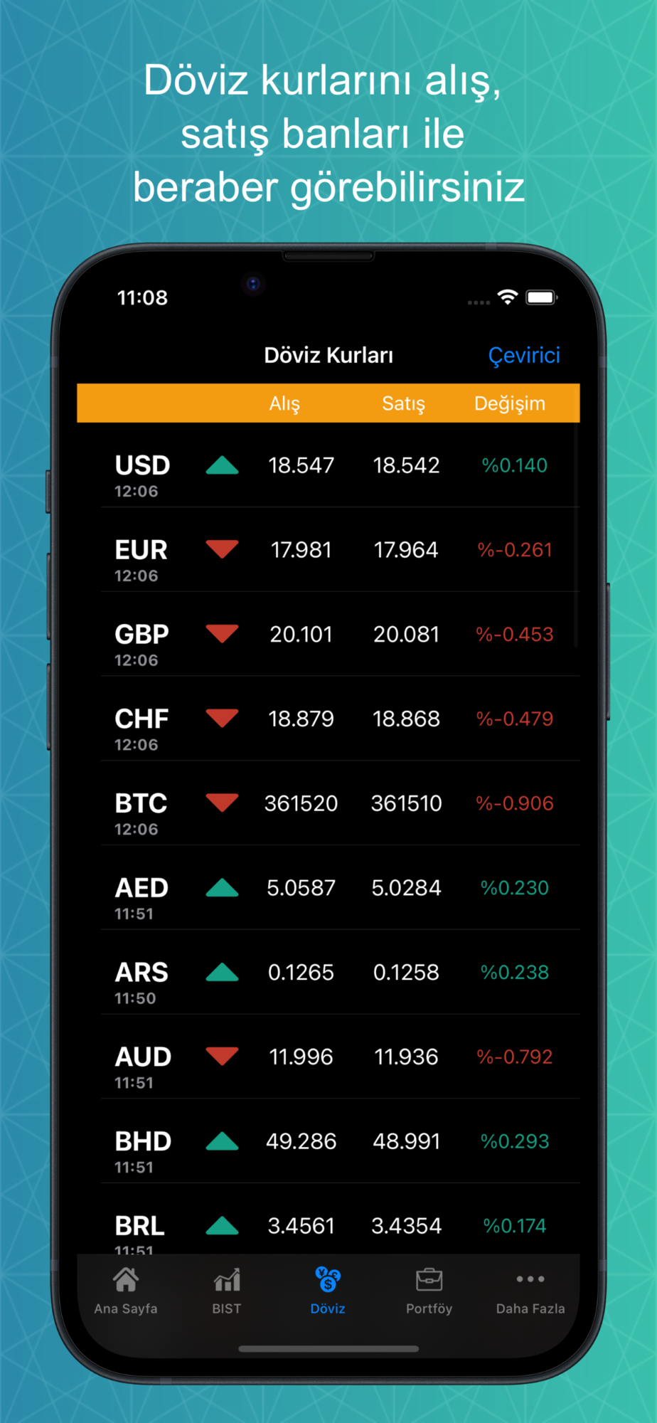 Borsa hisse ve döviz takibi için aranan uygulama burada. Üstelik atın ve kripto paraları da görebiliyor, döviz çeviriciyi kullanabiliyor ve portföy oluşturabiliyorsunuz.