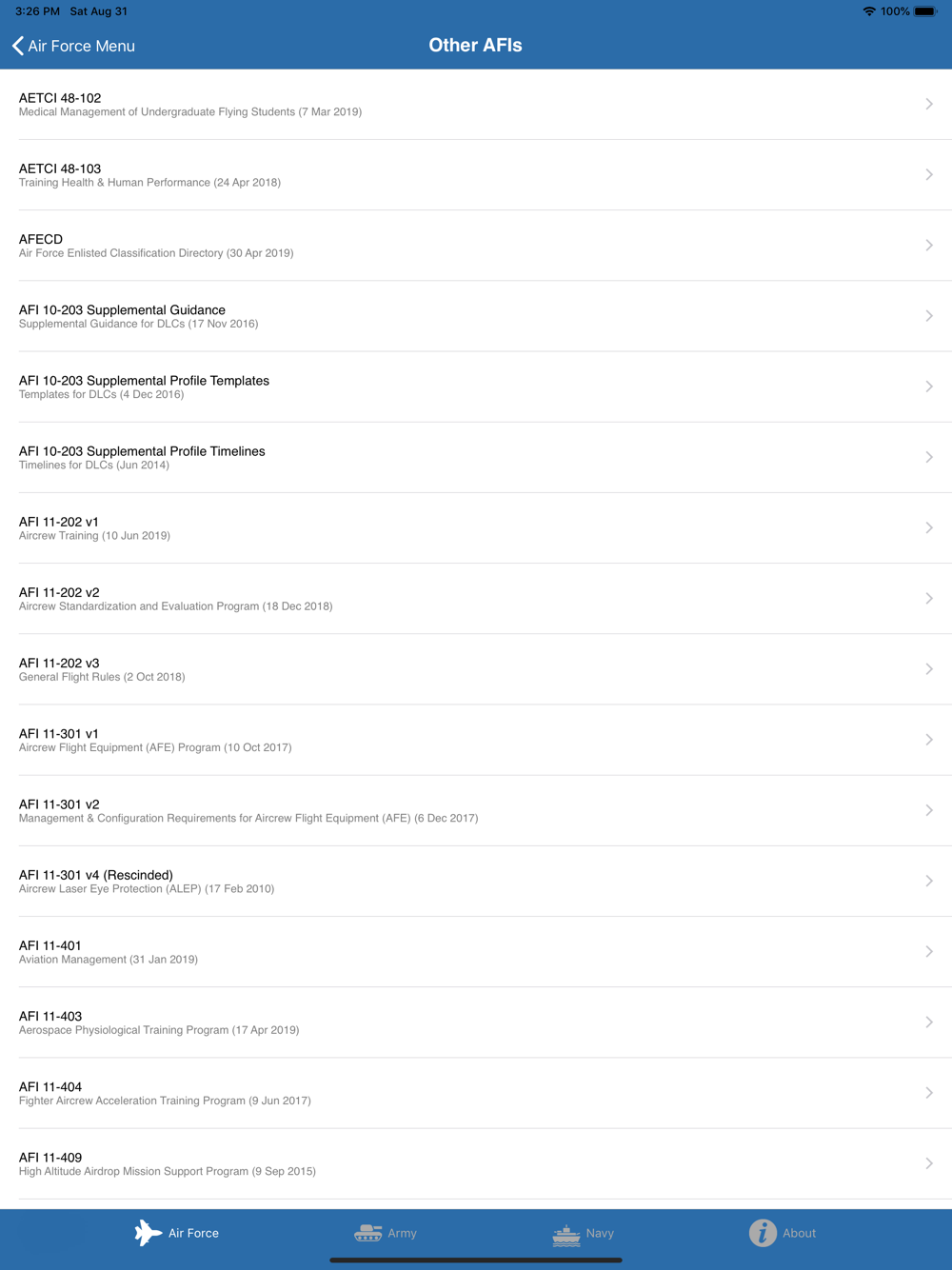 - Many other Flight-Medicine-Relevant AFI's & Documents