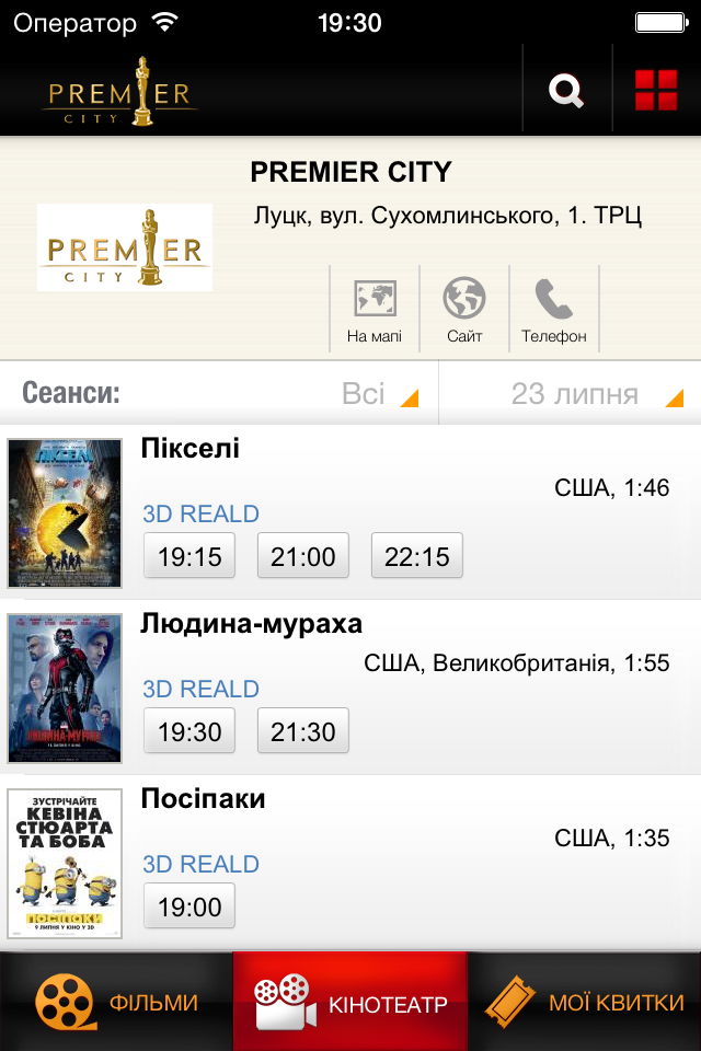 С приложением, выпущенном совместно с сервисом vkino.cpom.ua, вы можете покупать билеты в любое время и в любом месте.