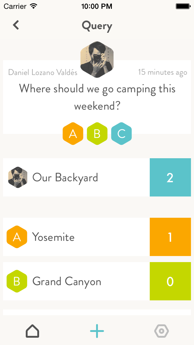 Cant decide where to go on a family trip or what type of food to have for a dinner party? Send your friends a Query and let everyone vote for their favorite choice.