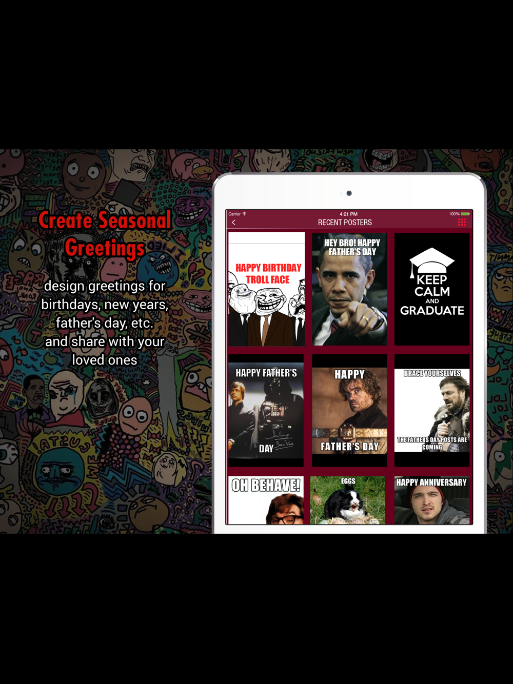 You can also add cool stickers to your posters and share on Facebook, Twitter and other social media.