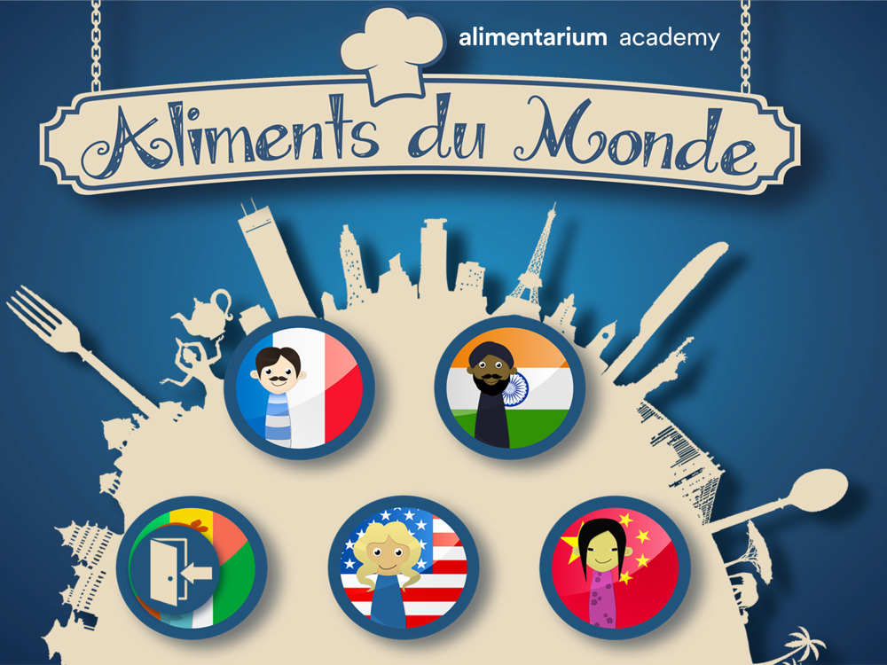 "Aliments du Monde" is a one-button game for preschoolers in which they can learn different typical dishes and foods from certain cultures.