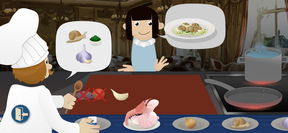 In each level the kid gets confronted with several dishes of a different culture, which they need to prepare and cook. They can choose from a variety of regional products of which they have to pick the right ones as ingredients for the desired dish and prepare them correctly.