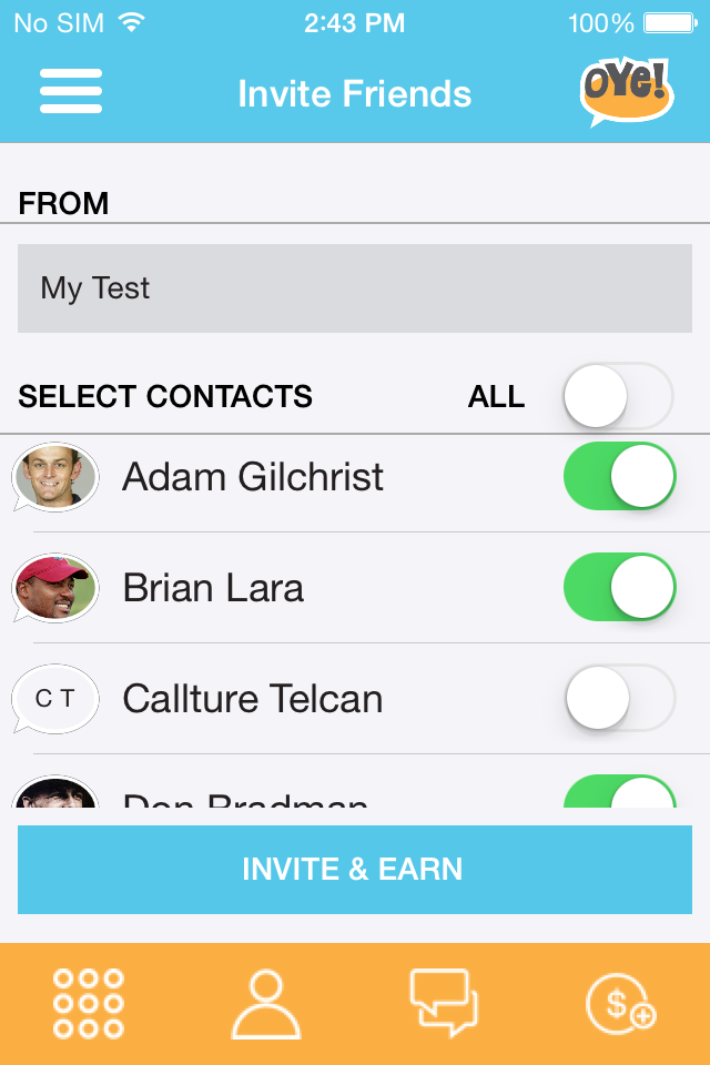 You own cellular number is your account with Oye USA; you get a passcode in SMS message or a phone call to authenticate you. Default calling method is Local Access, when you dial a phone number or choose one from your contacts; dialer attaches this number to a local number on our servers and dials that number. (Your Wifi/Data internet connection will be used for this local number setup). This local number automatically connects the call to the long distance number you originally dialed. If you have chosen “Callback” as calling method; when you dial a number or choose one from your contacts, dialer will send this number to our servers and our server will send you a call back on your phone number and connect this call to the number you originally dialed. Last but not the least is the “Internet” calling which makes the call using Wifi/Data internet connection without using allocated minutes from your provider. Internet dialing is also the best choice while you are roaming out from your provider’s coverage and have an internet connection available to you.