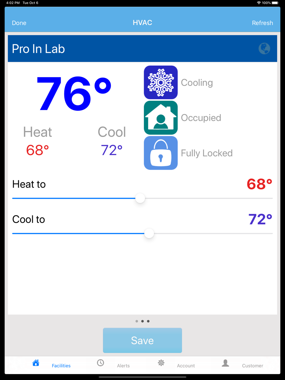 The Hill York Mobile app provides Hill York customers with the ability to remotely monitor and manage the HVAC settings for their facilities. Access to real-time HVAC information and historical graphical data is available through the app.