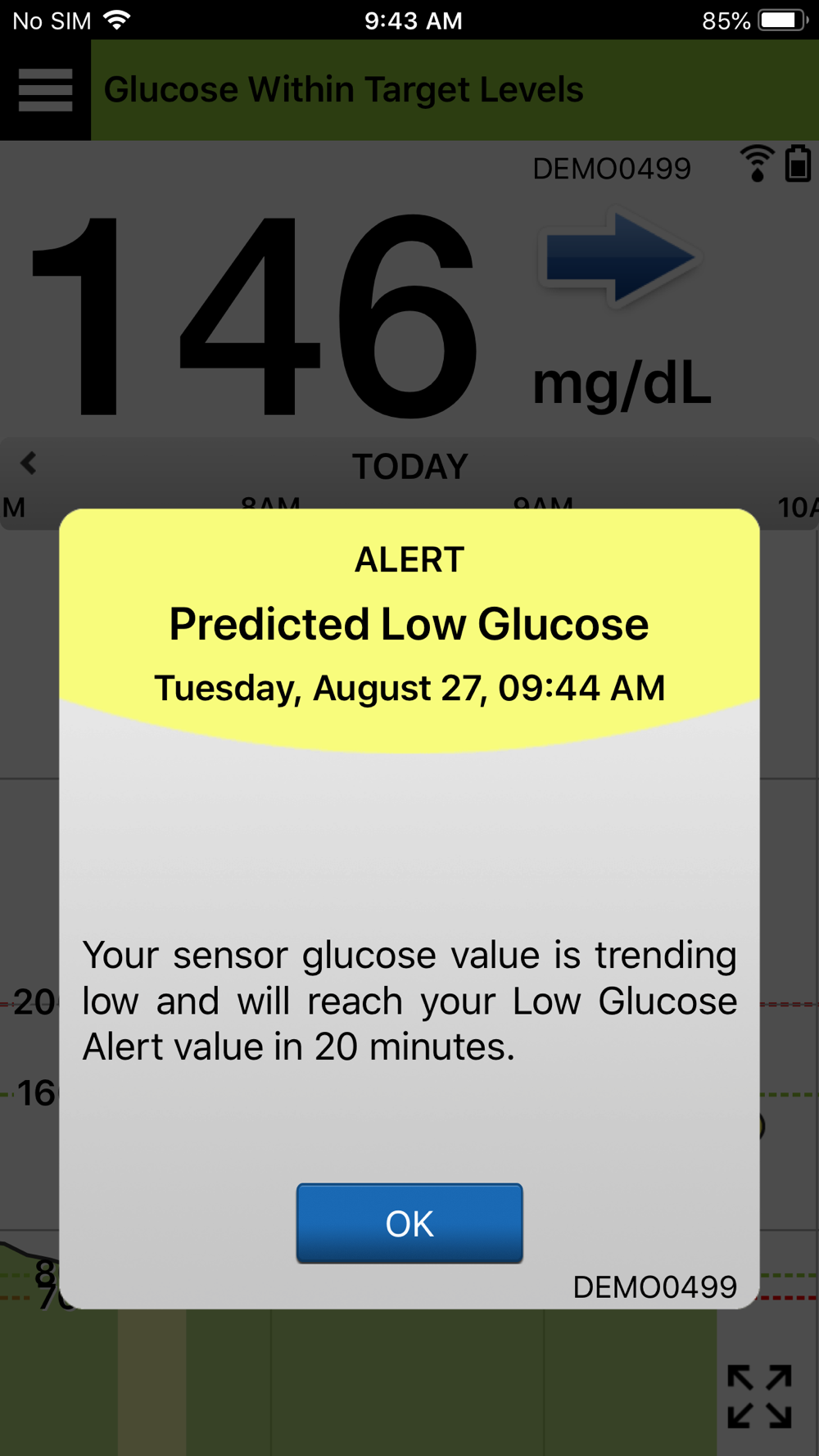In addition to the current glucose value, the Eversense Mobile App provides alerts for hypo and hyperglycemia based on the settings you enter. It also displays the rate and direction of glucose changes, and provides the ability to enter glucose-related events like meals, insulin and exercise. The Eversense CGM Mobile App is also compatible with the Eversense NOW Remote Monitoring mobile app and the Apple Health app.