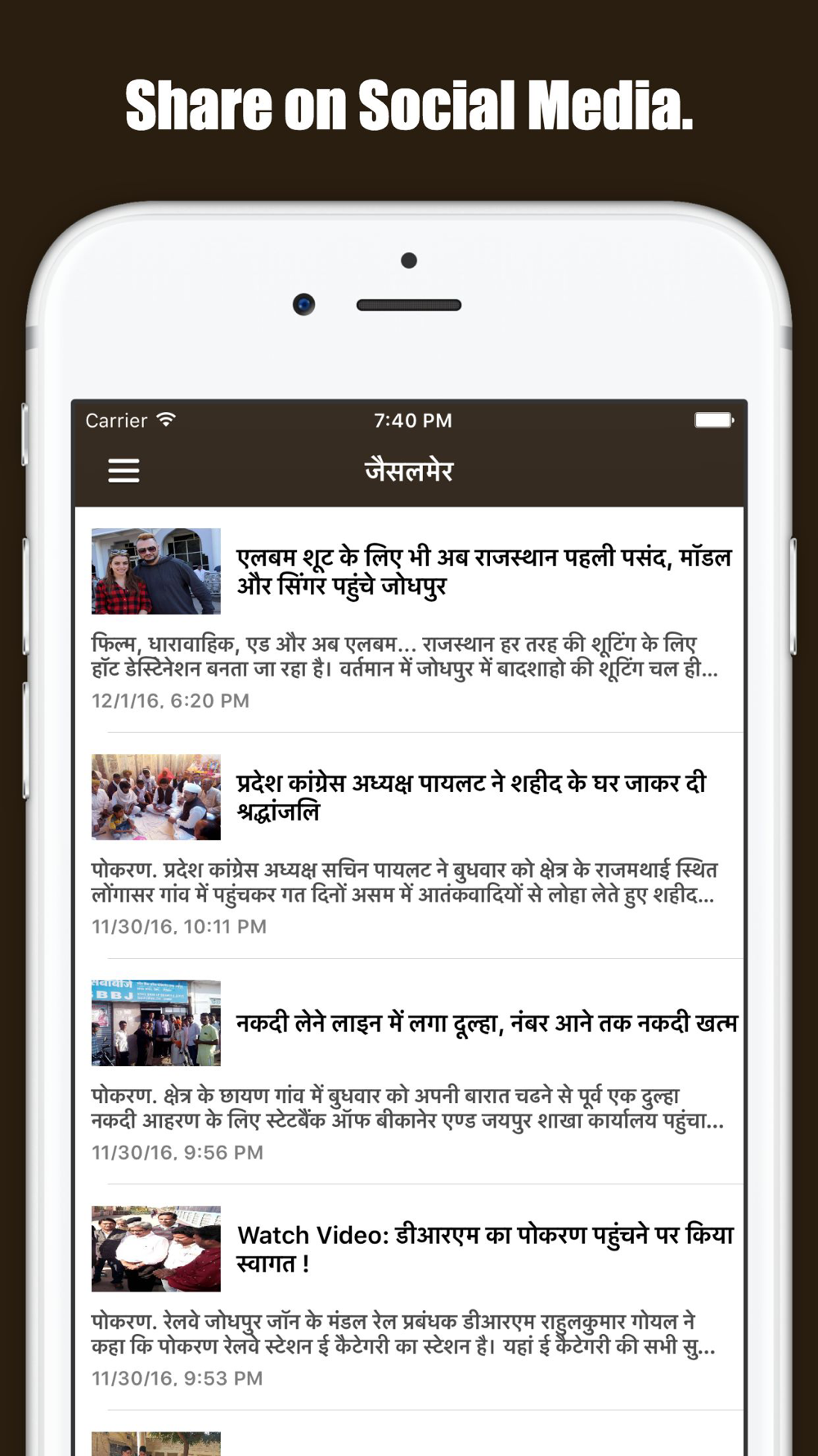 This App covers Latest Hindi News from Politics, World, Sports, Entertainment, Photo, Video, Business and States. This free App gives you the flexibility and ease of reading Hindi News from Rajasthan daily hindi news.