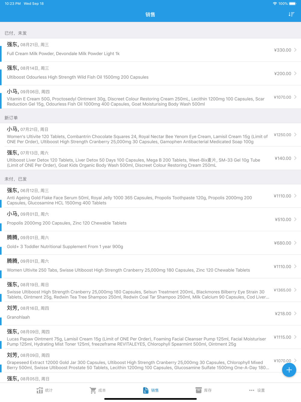 - 销售和进货统计:自定义时段对销售、成本和利润进行统计,并提供直观的图表显示(横屏模式可查看更多历史汇总数据);