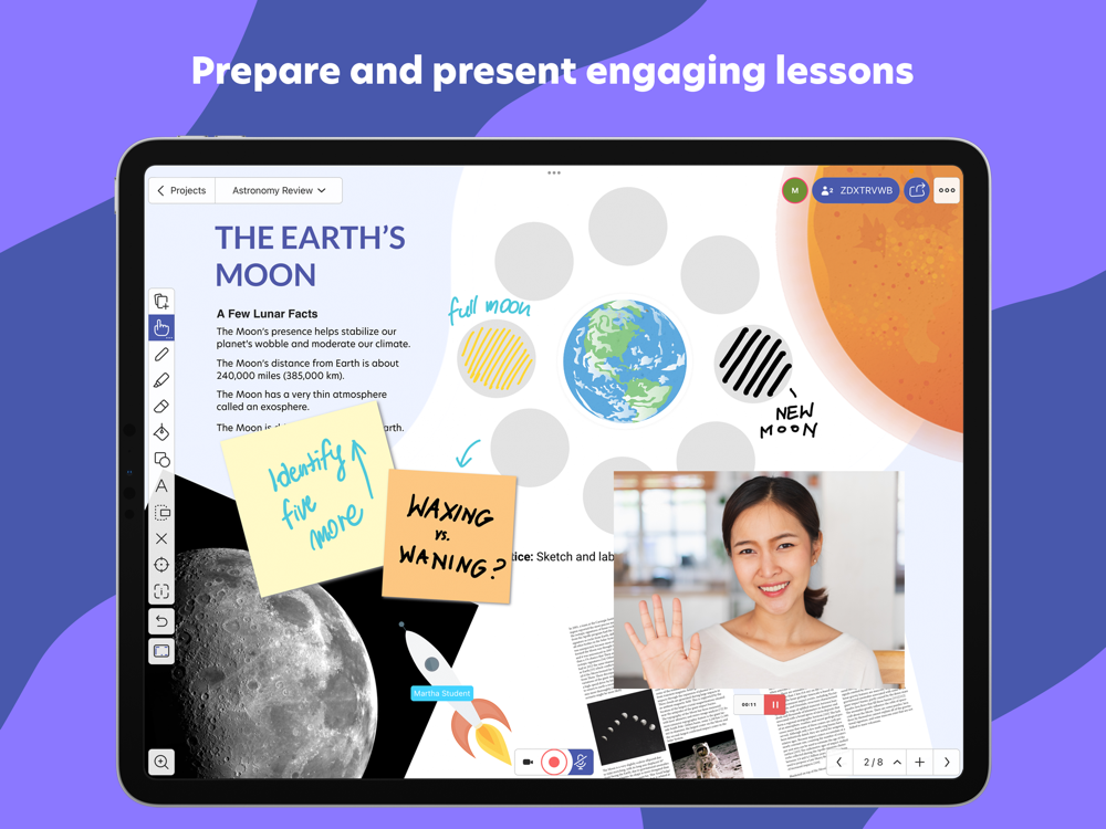 • Draw, write, sketchnote, visualize, Scribble with Apple Pencil, explain, show live in the classroom or online.