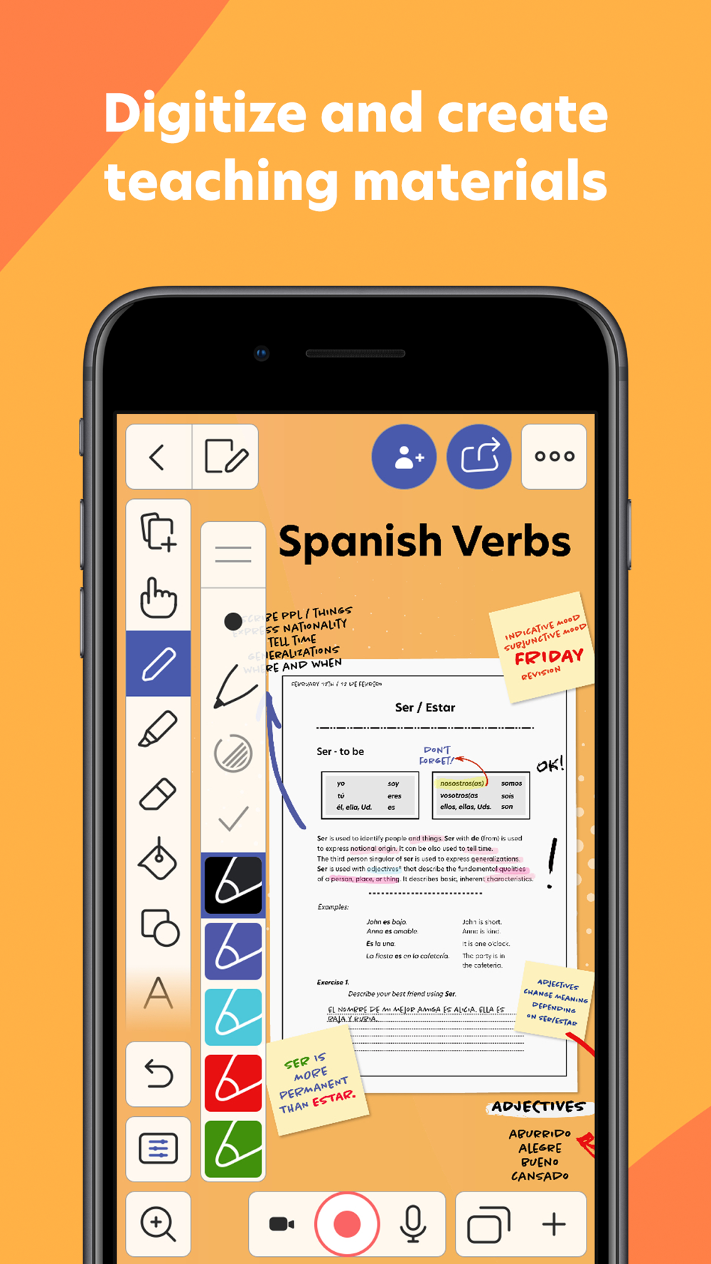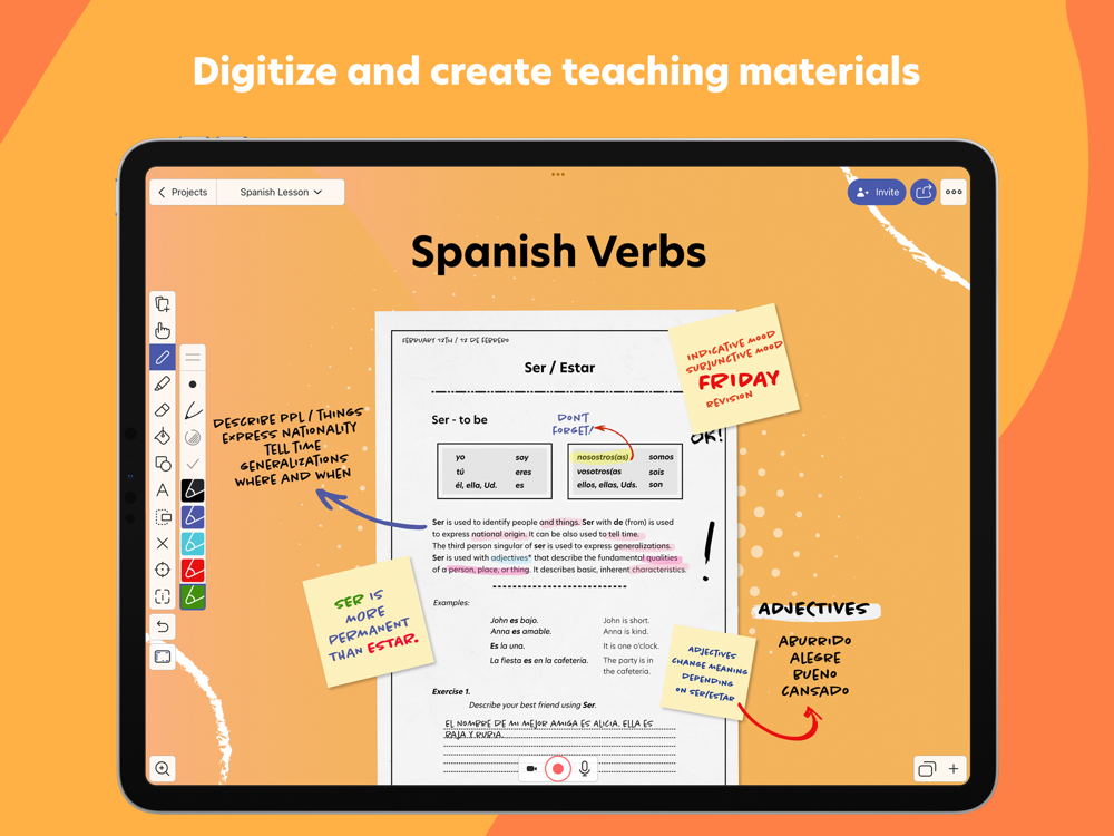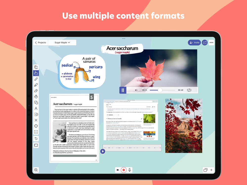 Replace your physical whiteboard with an infinite digital canvas you can use anywhere. Mix drawing and handwriting with imported documents and multimedia for better learner engagement. Invite students or teachers to the whiteboard during live presentations or to co-create video. Bring static slides to life – record content! Never lose your teaching materials again. Save your time and save paper.