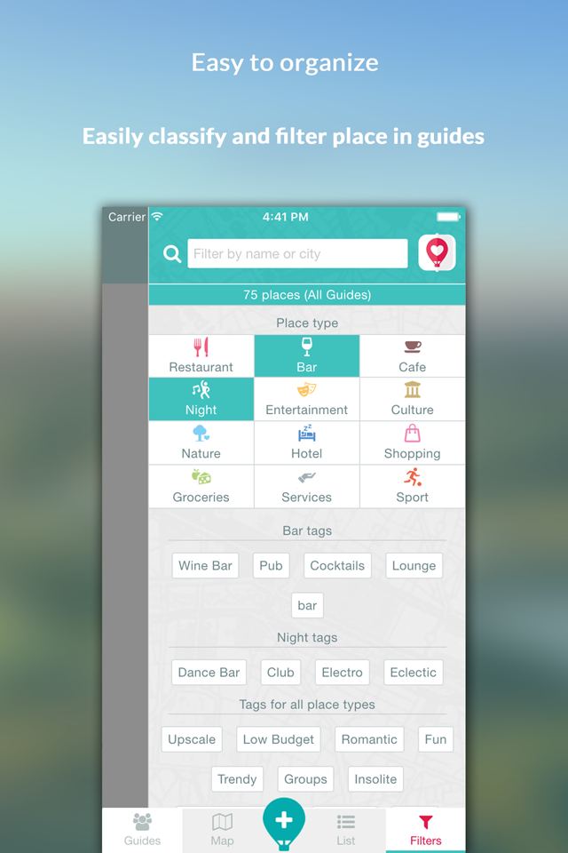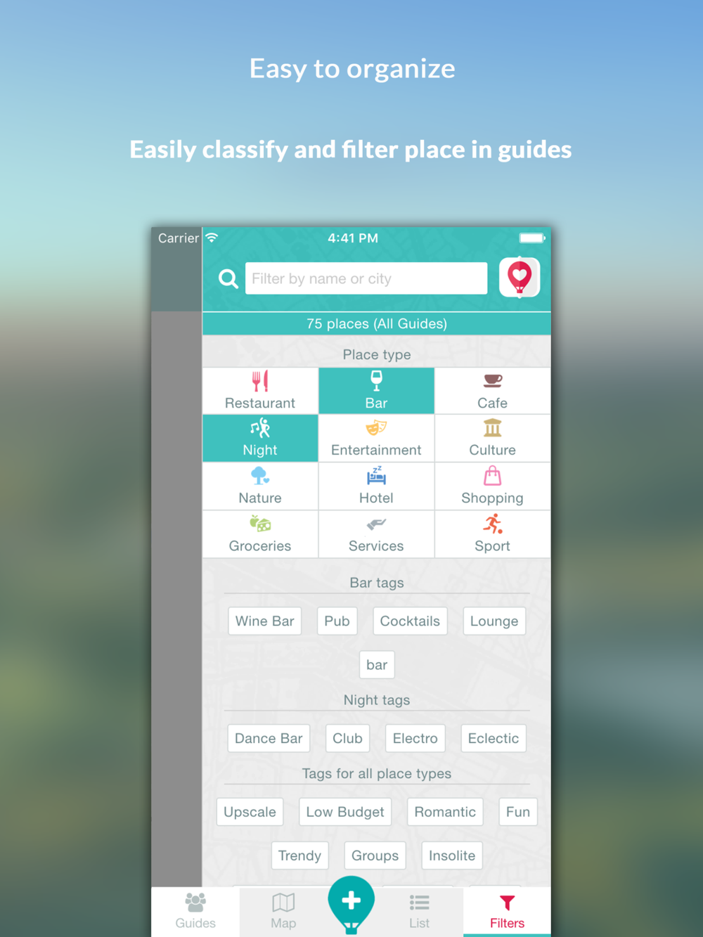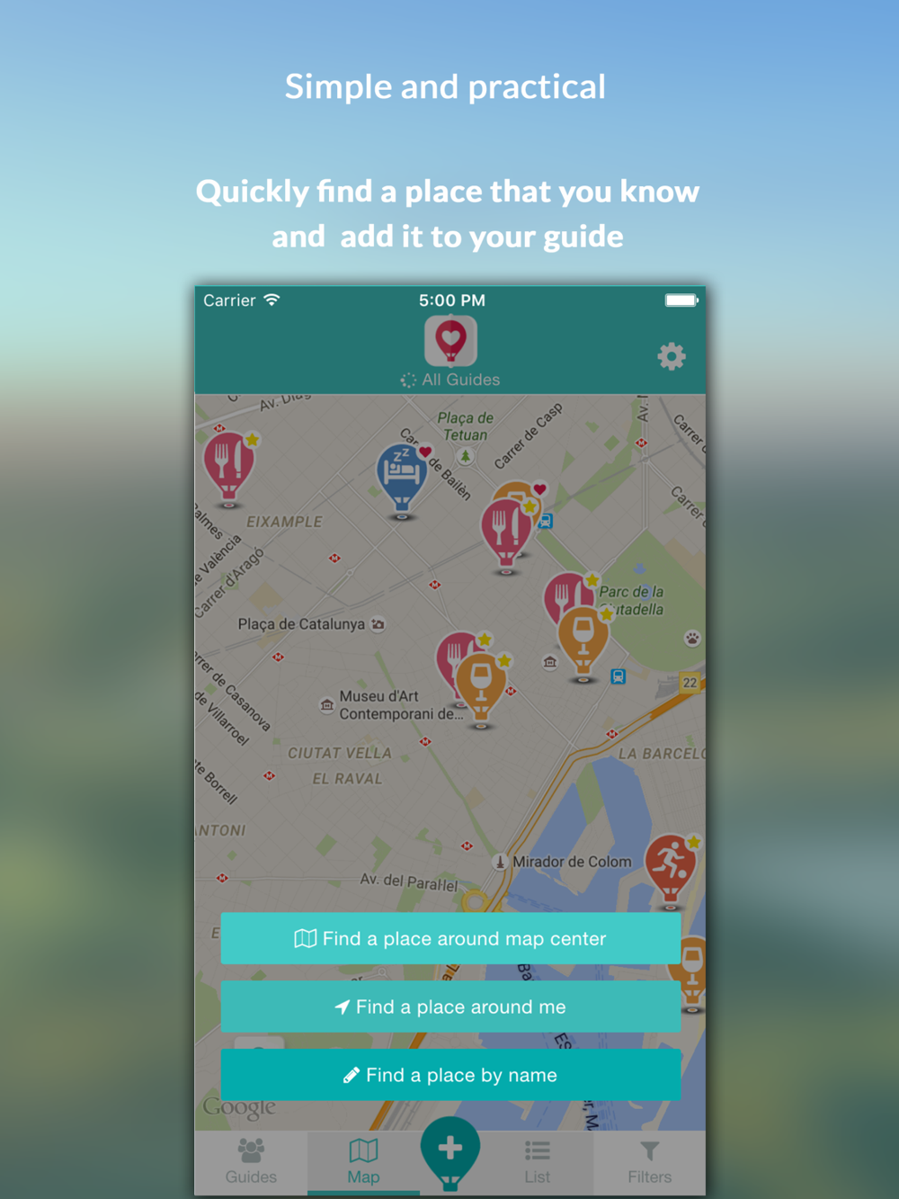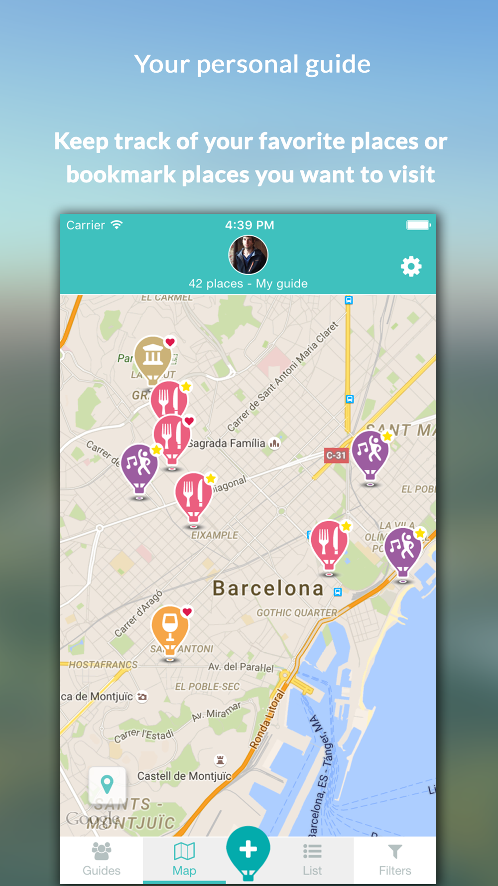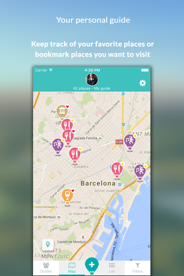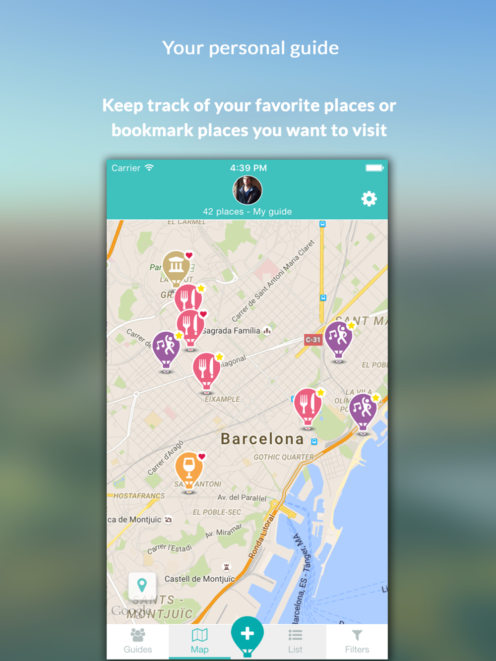 You can share your guide with your friends and let them discover your favorite places in your favorite cities. You can also discover new places in their guides.