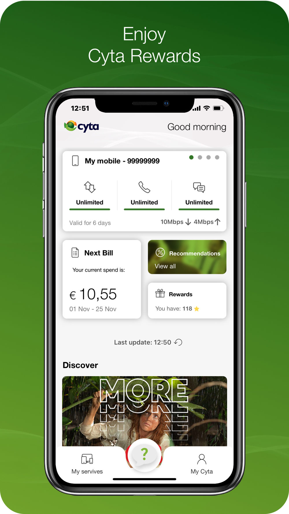 Easily monitor the use of your services, pay your bill, manage your services, enjoy unique gifts and privileges from Cyta Rewards.