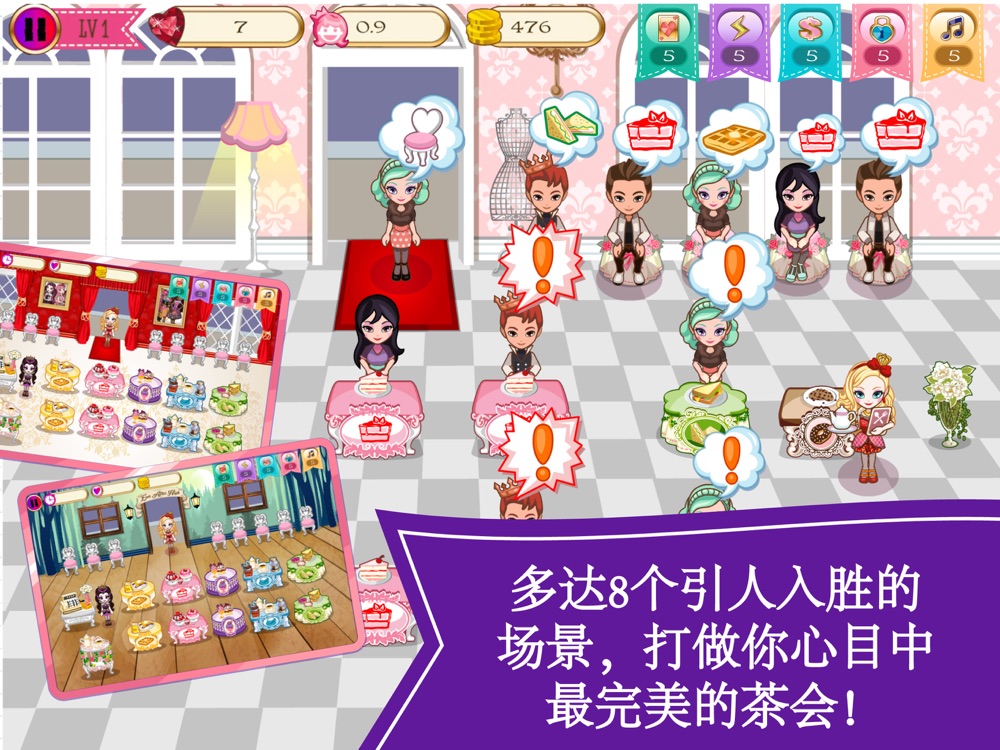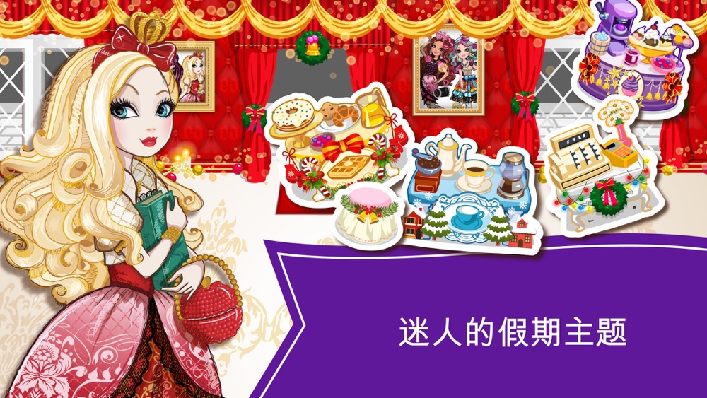 在Ever After High,勇敢的公主们正在学习如何主导自己的人生,编写自己的故事!为了令学校的地标-图书馆回复昔日的光辉,公主们很需要拥有精湛茶技的你的帮助!日久失修的学校图书馆已经有点破旧和过时,但幸好有皇家学生会的坚持及努力,我们争取到修复这座图书馆的宝贵机会。帮助学生会会长Apple White™和Madeline Hatter™ 筹备一个精彩的茶会,为图书馆募集经费购买新书!虽然服务第一,但也不能待慢客人,如果让客人等太久的话,他们会离场的。因为这个茶会别具意义,所以也吸引了很多阔绰的VIP顾客-就是有很高地位的教授们。教授们时常也会光临茶会,所以无时无刻也要做好准备喔!