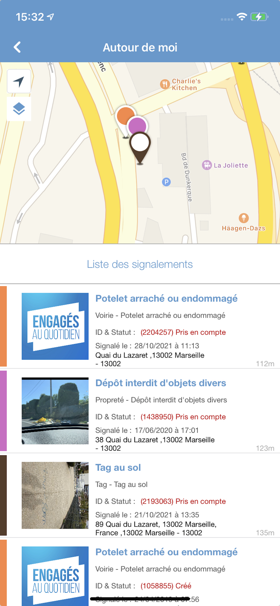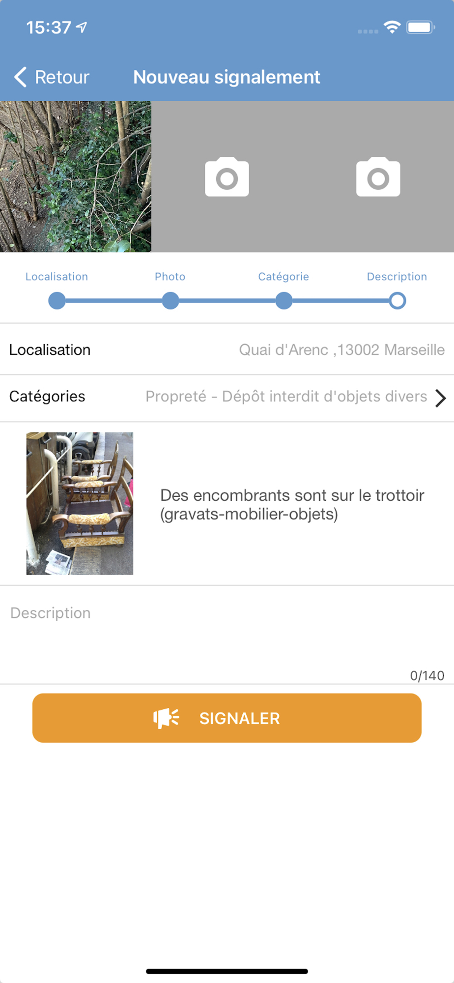 C’est simple, l’application vous géolocalise, vous prenez une photo et vous sélectionnez le dysfonctionnement à signaler.