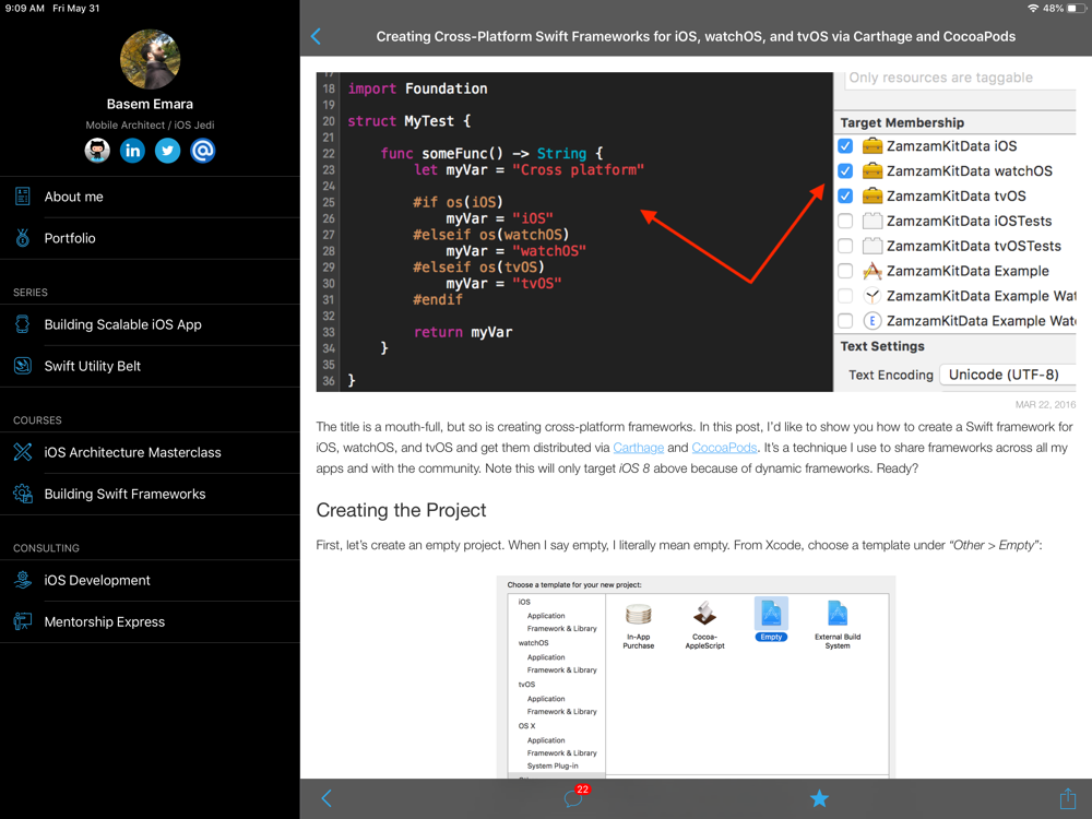 The code can be downloaded here: https://github.com/basememara/BasemEmaraBlogIOS