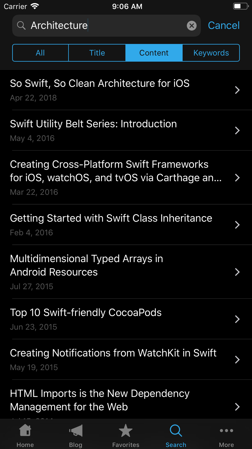 An open source project for iOS developers and geeks. Written in Swift and features include offline capabilities, advanced search, caching, and more.