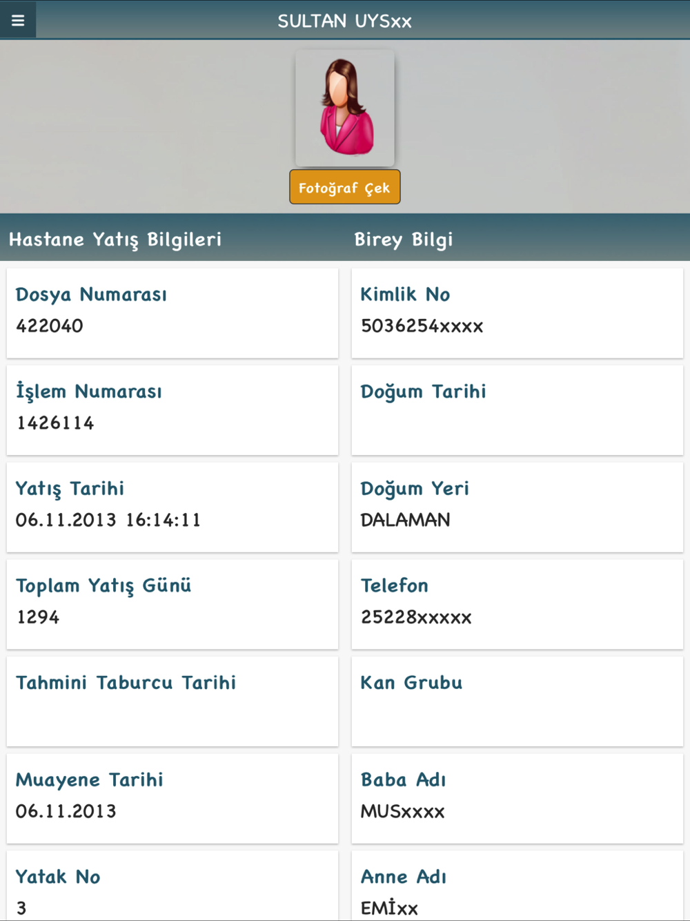 Kulanıcıların hasta bilgilerine ulaşabilmesi için kullanıcı adı ve kullanıcı şifresine ihtiyacları vardır. Yetkili kullanıcılar aşağıdaki bilgilere ulaşabilirler.