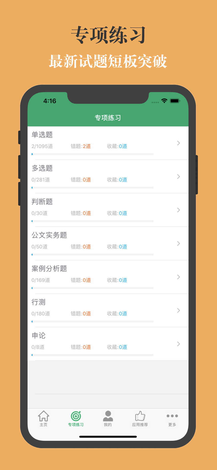1、专项训练:基础知识单选题、多选题、判断题、公文题、案例分析题,含法律法规、社区基础知识等,每一道题目都有详尽的解析,可选择不同题型,并可手动将易错或未牢固掌握的题加入复习库和错题库,以便反复练习。