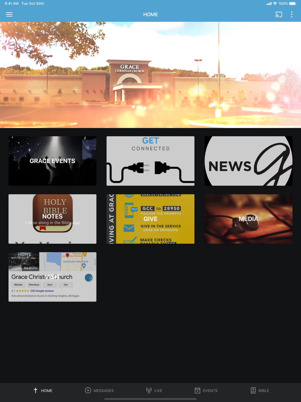 All our weekly messages are available on video and audio. You can find the link to our live streams, giving and our full calendar of events. Make sure to enable push notifications to keep up with all the latest updates and share the app with your friends.