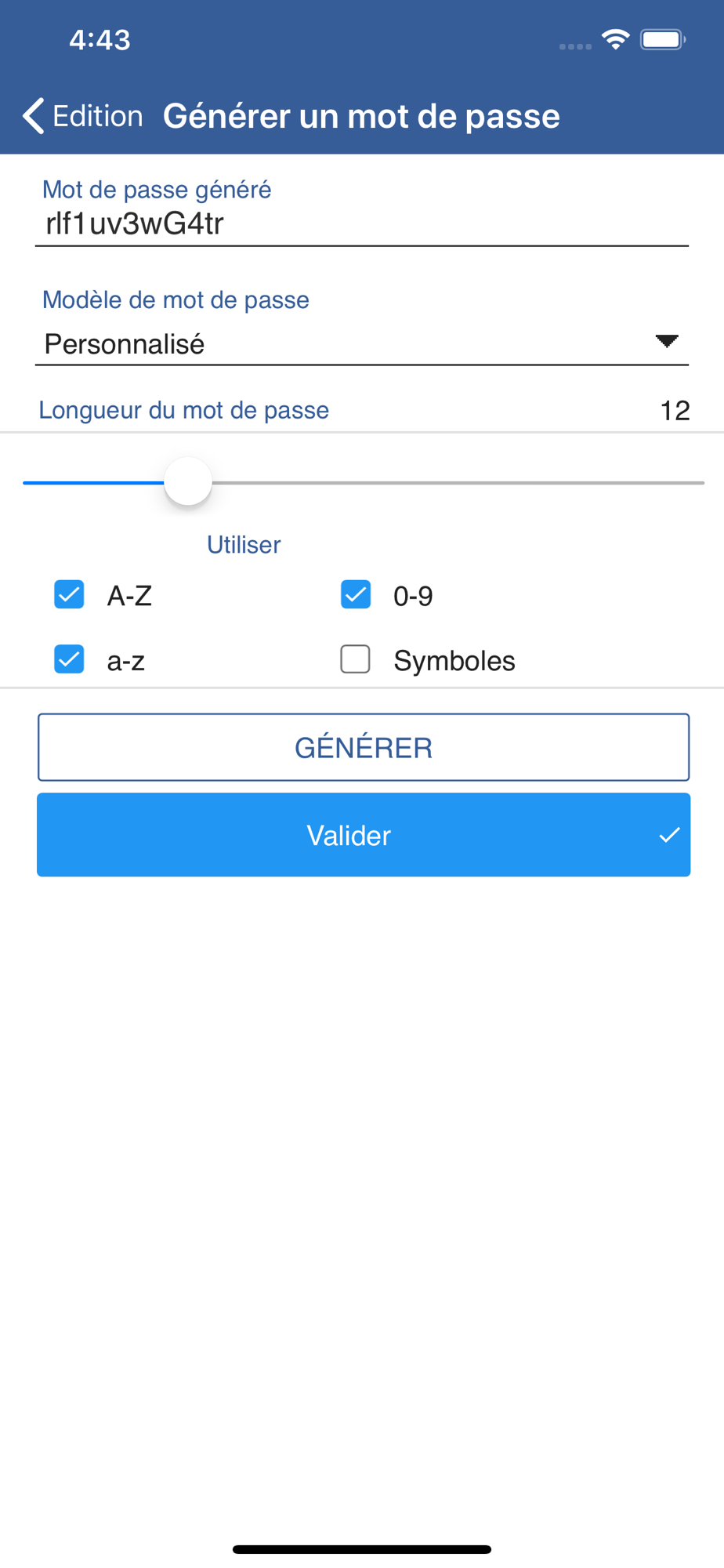 WM Mot de passe est également capable de générer pour vous des mots de passe extrêmement sûrs.