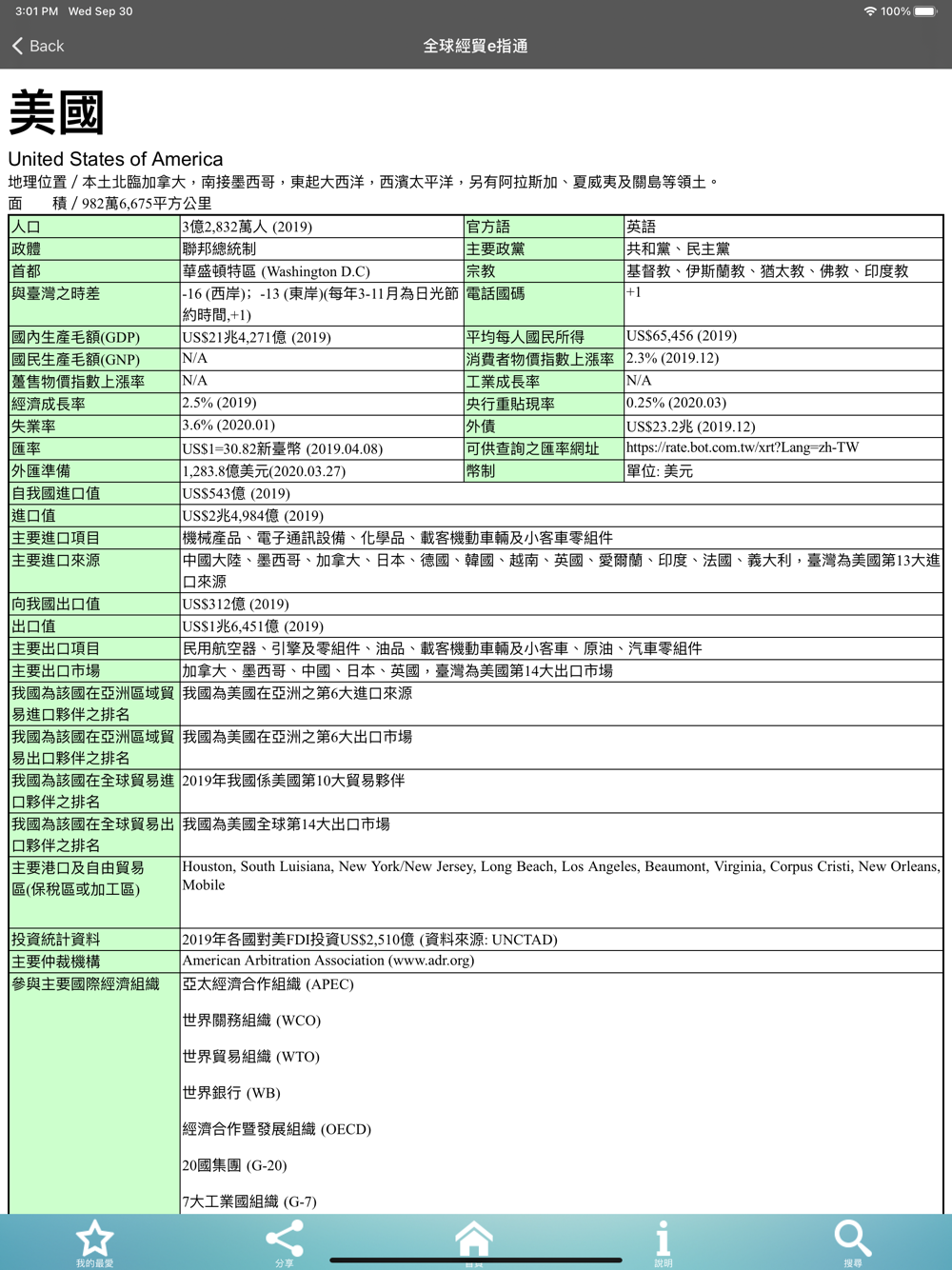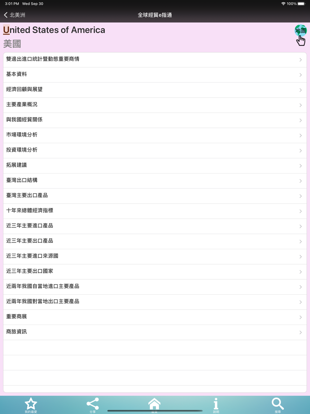 蒐集全球171個國家/地區最新經貿資料,內容豐富、實用;透過APP可以快速一窺全球市場最新經貿現況及拓銷建議,是拓展國際市場不可或缺的利器!!!