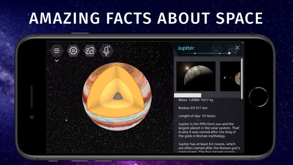 Explore the map of Solar System with voice control and discover stars and constellations!