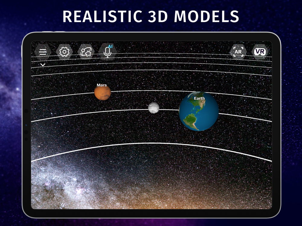 Interactive app Stellar Sky — Planets Map is a unique guide to the night sky with an accurate description of space objects. The AI voice assistant makes it easy to navigate the sky and brings more fun to your journey through the galaxy!