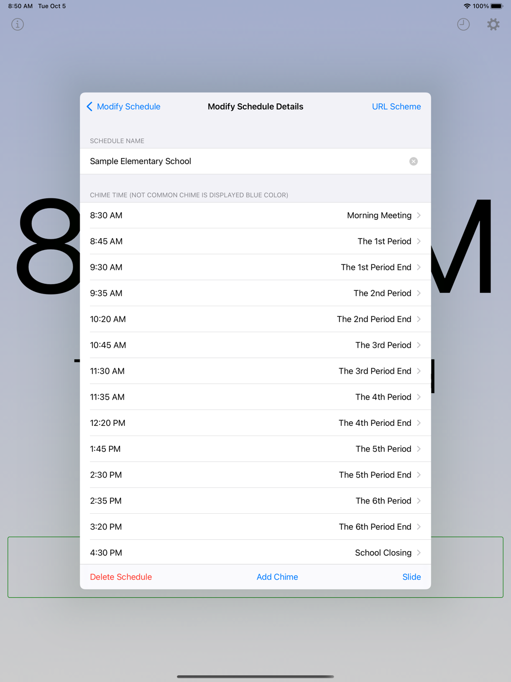 This app is a basic alarm with scheduling capabilities. If you wish to use a school chime inspired by the Westminster Quarters, this app can fulfill your request. In Japan, the school chime is commonly used to signal the beginning and end of class periods.