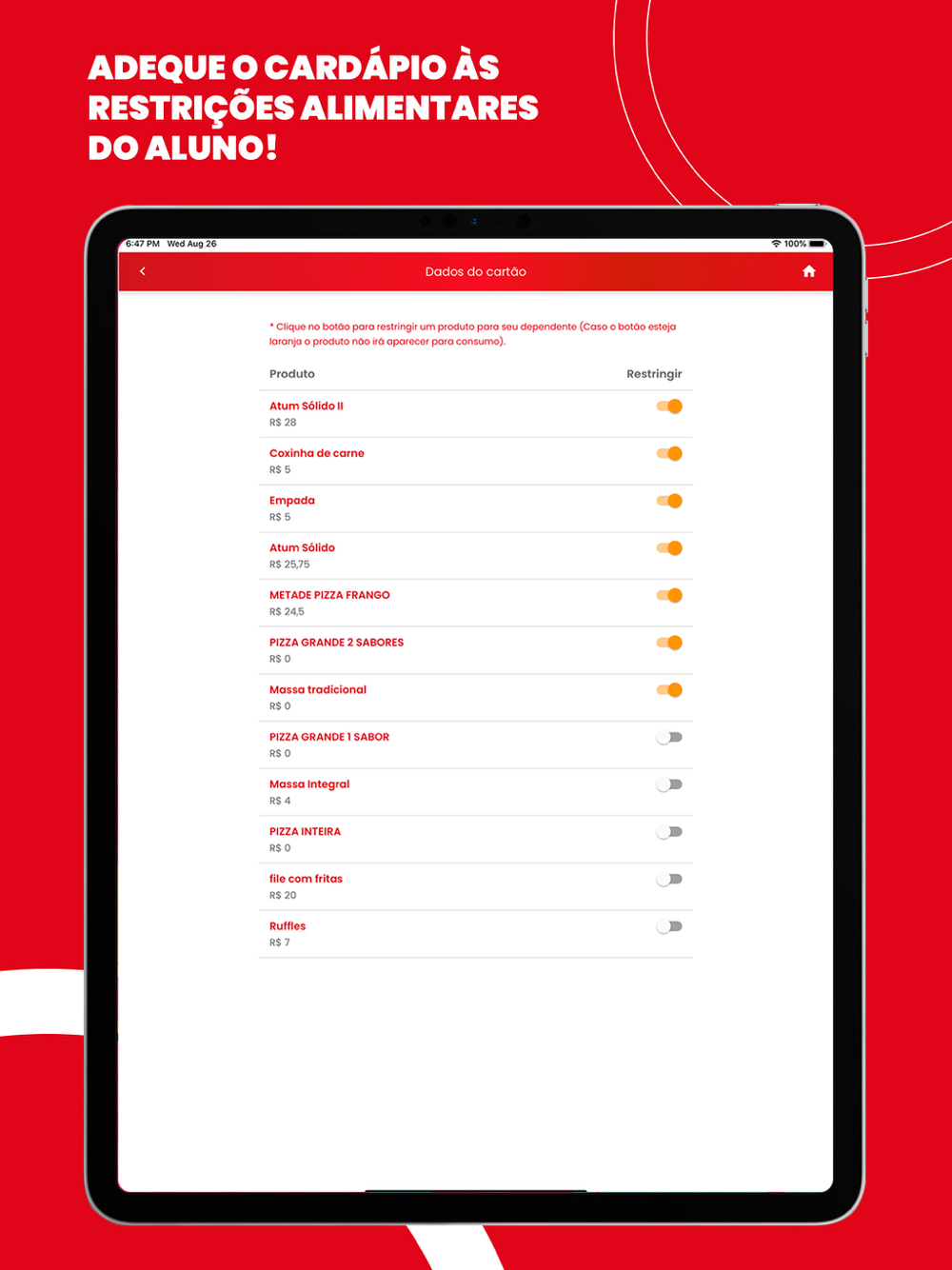 + Controle: Limitação do gasto diário e visualização do extrato financeiro.