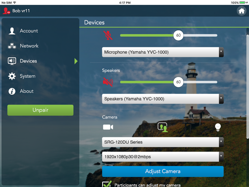 - Select and configure which camera, microphone, speakers, and content capturer device to use during your Vidyo calls