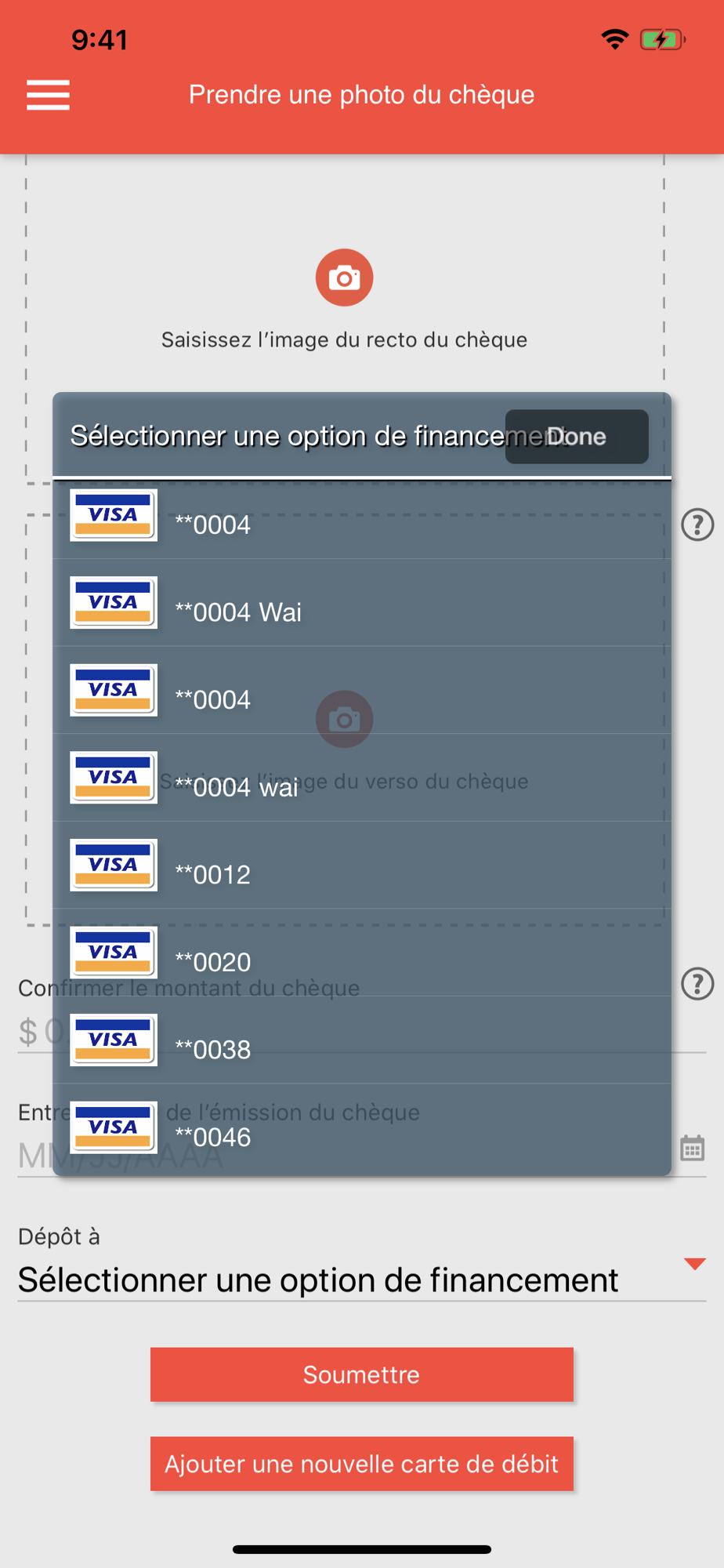 Déposez vos chèques directement à votre carte prépayée TitaniumMD MastercardMD ou encore à toute carte de DÉBIT Visa. Vous n’avez qu’à prendre une photo de votre chèque et nous l’envoyer. Vous pouvez également visualiser votre historique de transactions et connaître le solde de votre carte pour vous permettre de gérer vos dépenses.