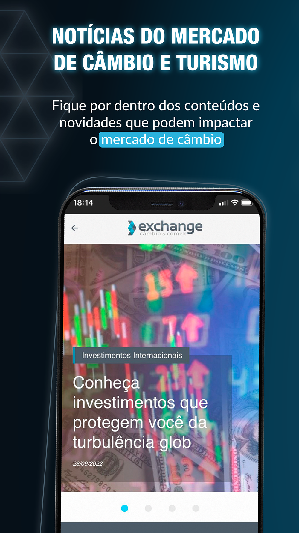 Com o Novo App Exchange, você realiza com facilidade as suas Remessas Internacionais e compra de Moedas Estrangeiras em um só lugar! Além disso, você realiza pagamento de hospedagem, seguro viagem e aluguel de carro no Brasil e no exterior!