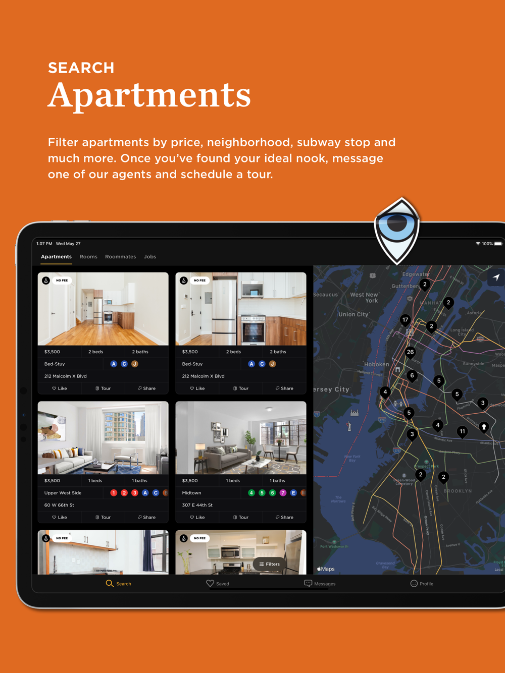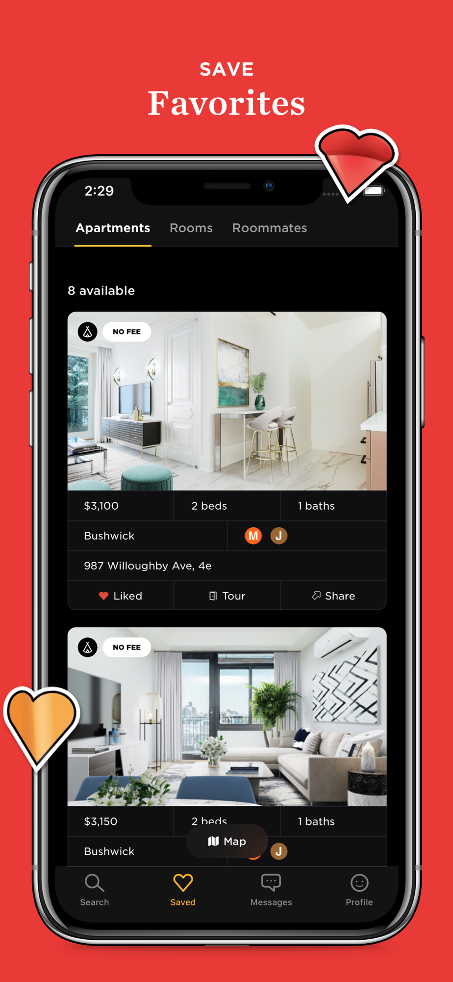 - Curated apartments and rooms (updated daily) according to your budget, subway stops, pet policies, and more.