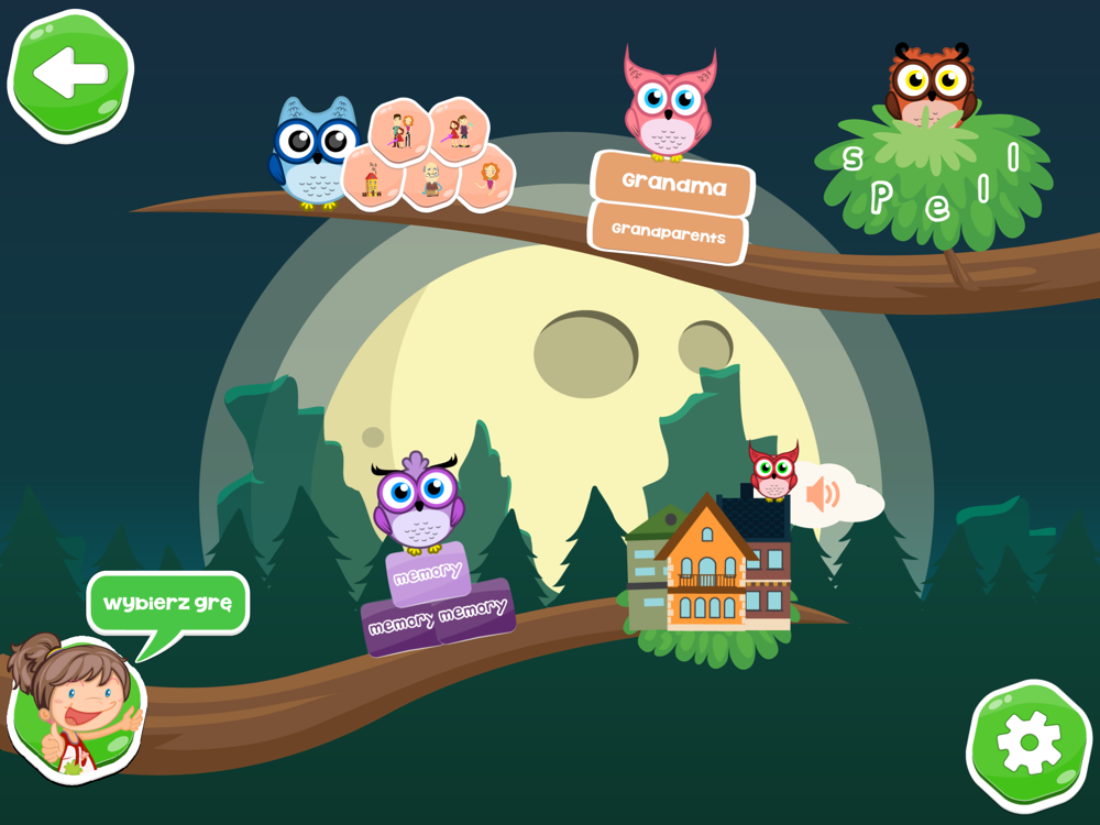 Pięć małych sówek chce nauczyć się angielskiego, więc musicie im pomóc! Sówniczek (sówka+słowniczek) oferuje 5 edukacyjnych gier, a każda z nich skupia się na innej umiejętności językowej. Dzięki Sówniczkowi, każde dziecko będzie w stanie rozpoznać dane słówko (zarówno słysząc je jak i widząc) oraz pozna jego pisownię i wymowę.