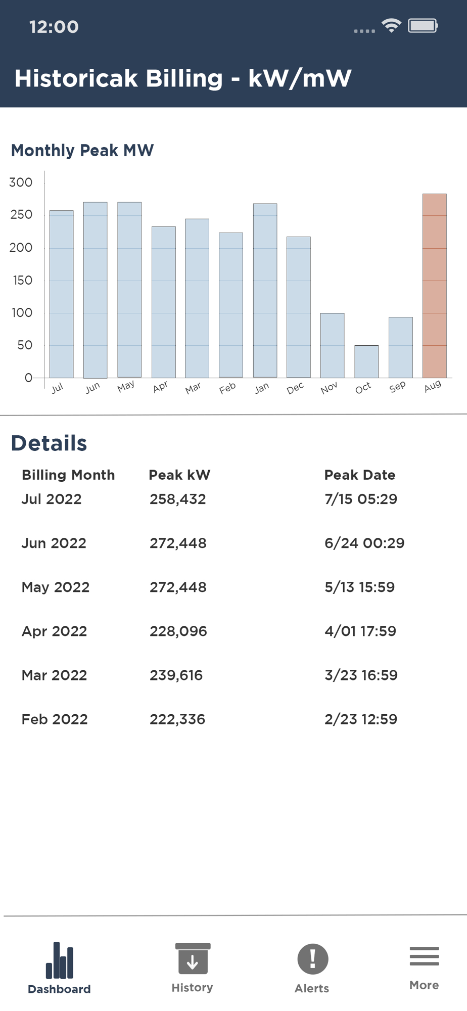 • Historical monthly energy and demand