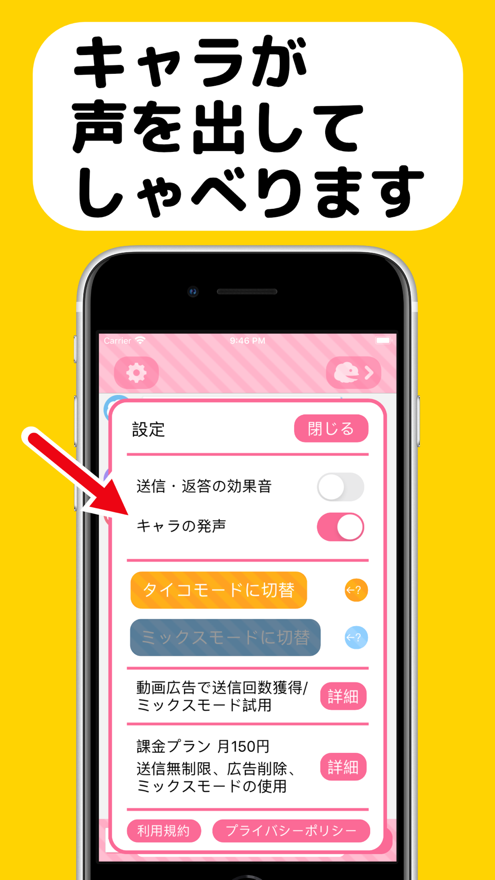 設定を ON にすれば、キャラたちと音声でやりとりすることが可能です。