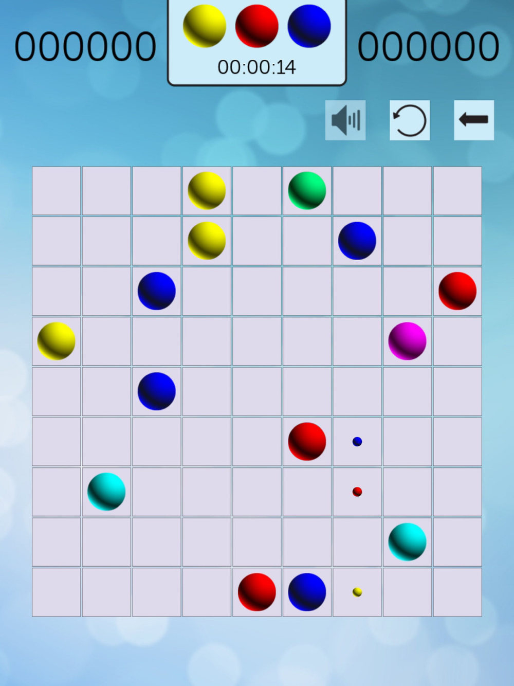 This classical board game is set with 9x9 grid. On this square grid, there are some random color balls in normal status and three small ones which could be replaced by a big one when you drag another color ball into. If you don't, the small color ball will grow and become a big ball, take the place and fill up grid. Your mission is to rearrange the color balls to form a line of same color with at least 5 color balls in a line (row, column, cross). Then you have a color line, all the balls will explode and the grid will be clean. Do it again as much as possible to get score.