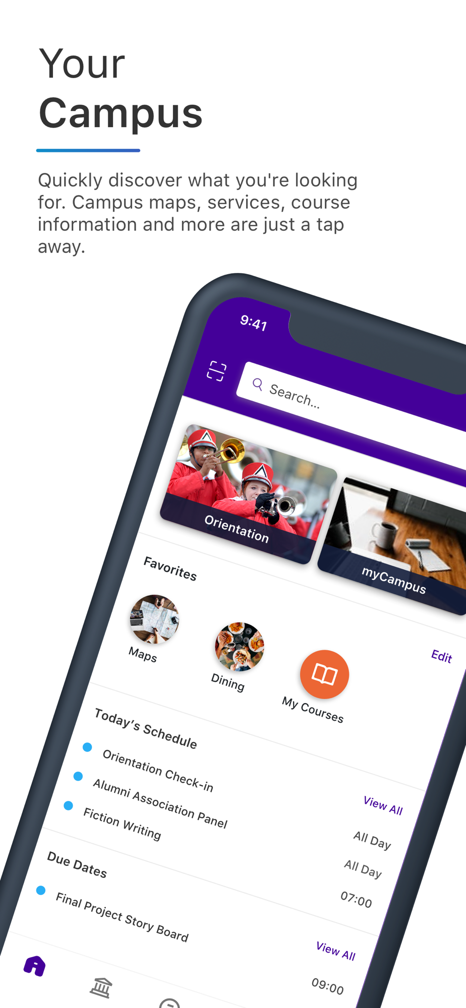 The USF app brings services to your fingertips and enables you to connect with your classmates and friends. You can access events, calendars, contacts, maps, and more! Stay organized with the timetable function, where you can save events, classes, and assignments. Join your campus community on the USF app now!