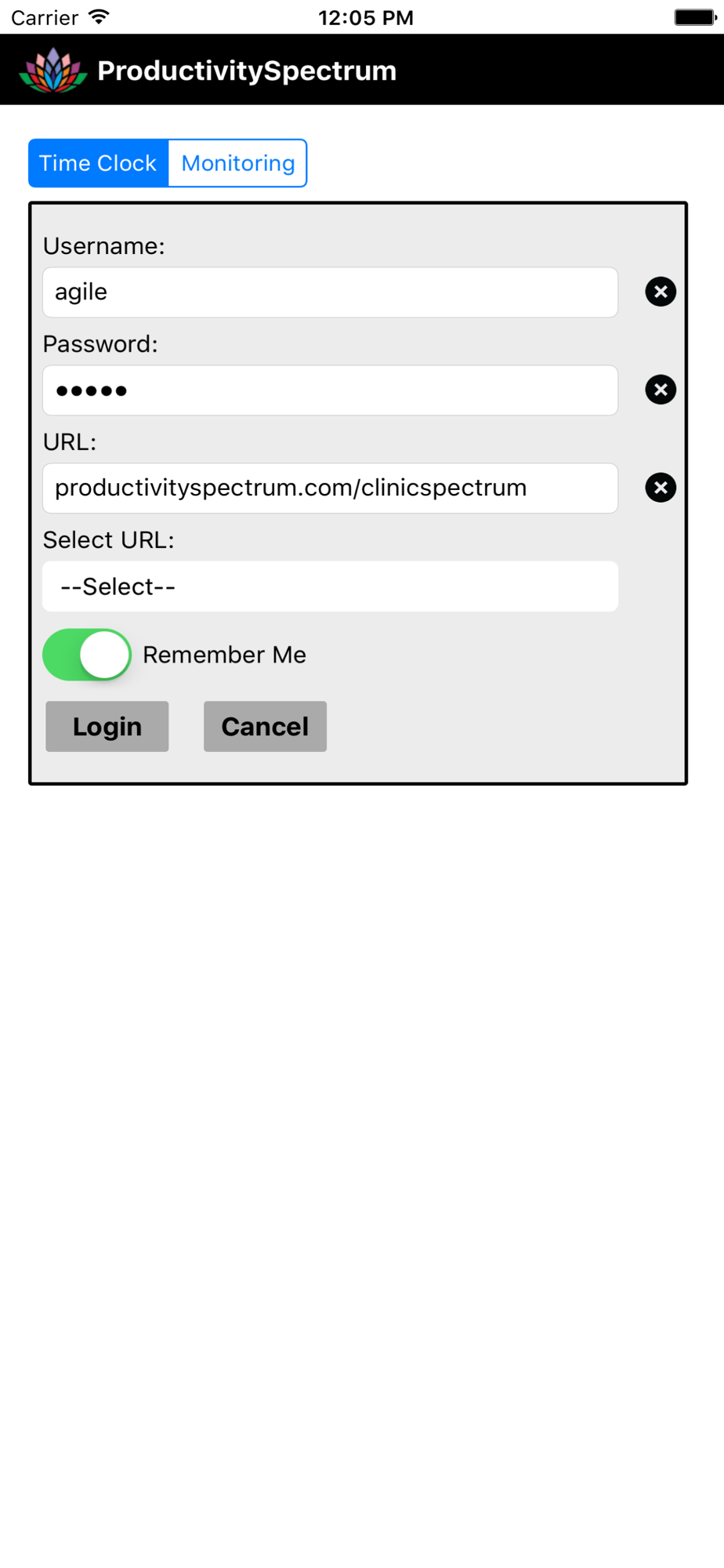 ProductivitySpectrum is providing functionality of “Time Clock” and “Monitoring”.