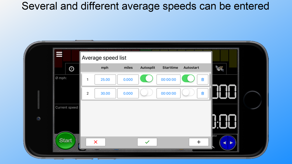 Speedpilot indicates the average speed not only with nummeri but visually with a progress indicator.