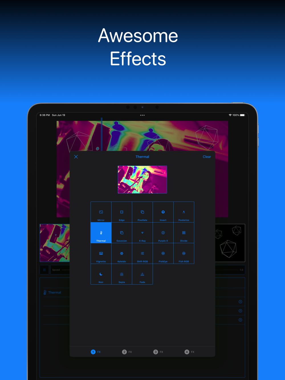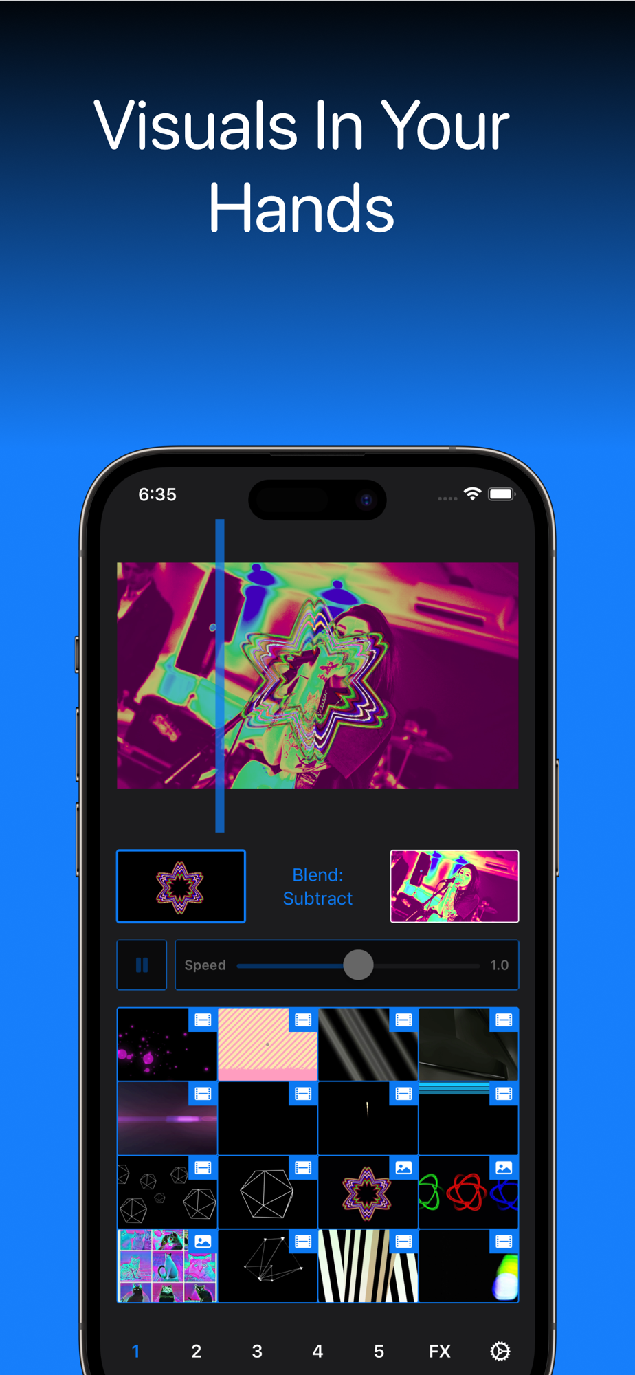 - Mix videos or photos, loaded into the app from your Photo Library, or via Files app