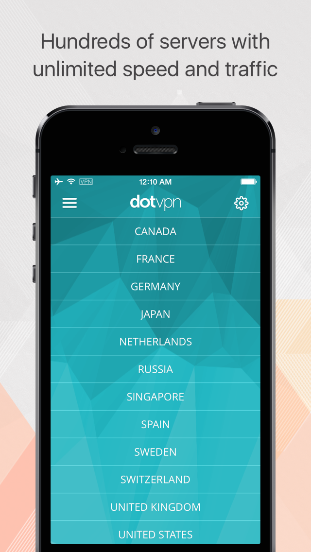 Have you ever been restricted when traveling, or when using a public WI-FI network? DotVPN gives you access to websites, encrypting all your traffic and changing your IP location by just one click. We protect your important information by changing the IP address. We made all of our free VPN servers as fast as possible. Our proxy service provides you with 12 different country IP address, which is ideal for changing any country address in no time. Unlike other free VPNs, we never log your traffic or sell your data to third parties.