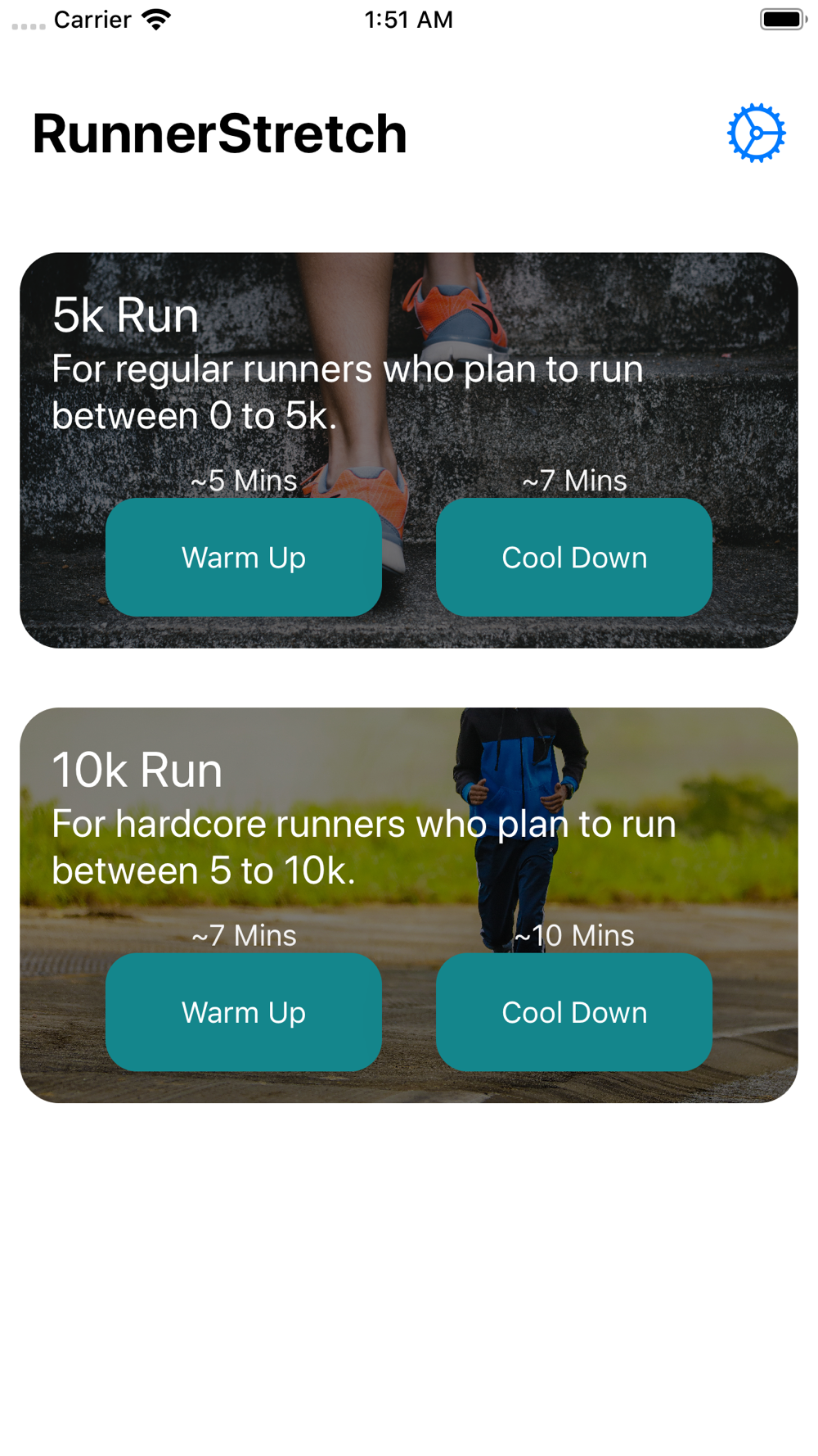 - Choose 5km or 10km running for more tailored warm up and cool down time.