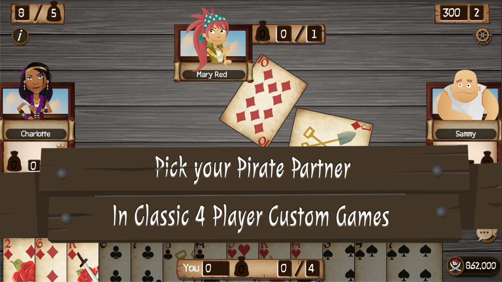 •4 Player Partner custom game mode. Choose your pirate partner in this most popular way to play Spades.
