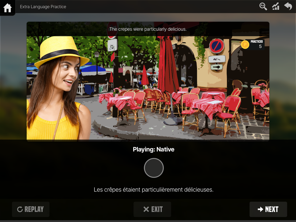 Ouino has an extensive amount of example sentences, each associated with two very helpful pronunciation speed. A fast pronunciation to help you get used to the speed of the language and understand native speakers. A slow pronunciation to break down each sentence, helping you to clearly understand how words are pronounced.