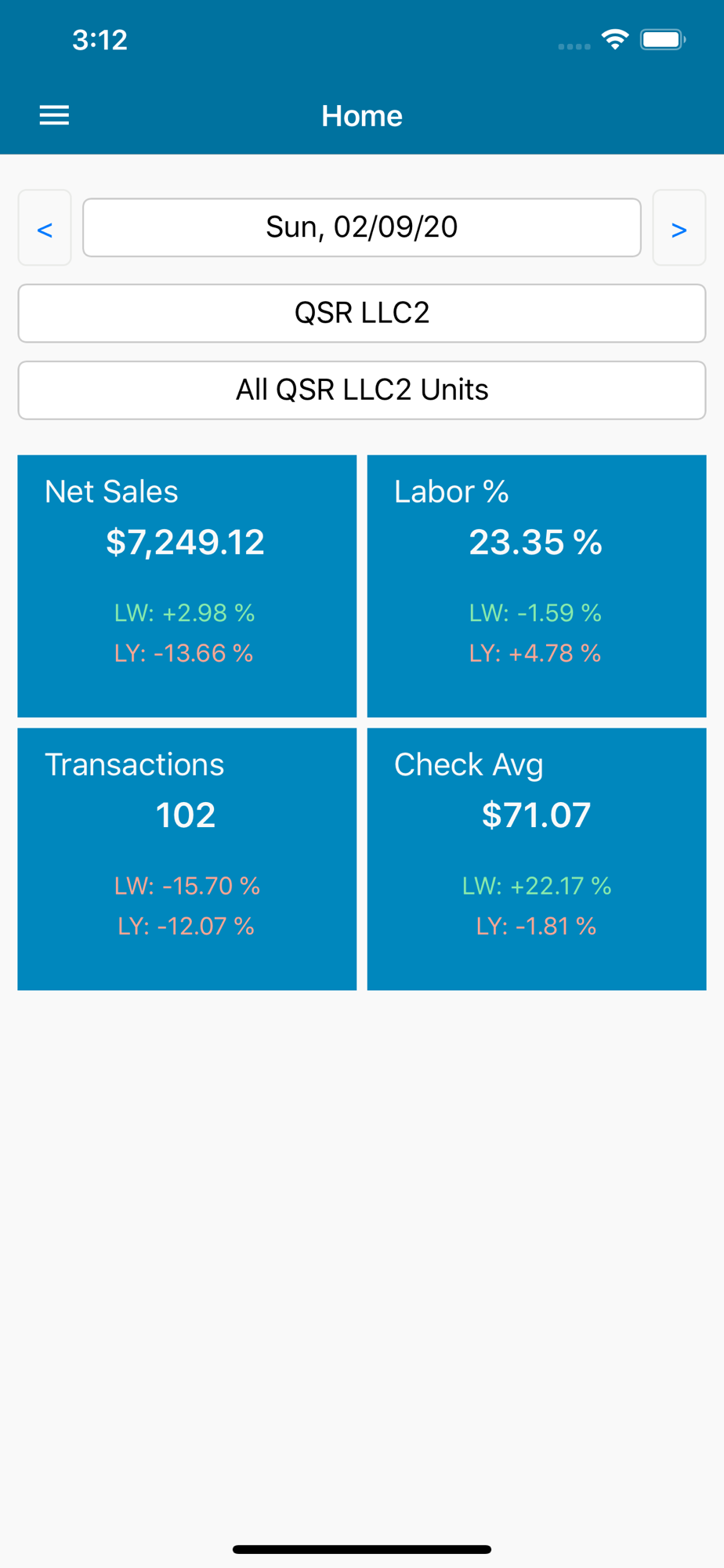 Login and immediately get a quick recap of Net Sales, Labor Percentage, Transaction Numbers, and Cash+/- compared to last week and last year.